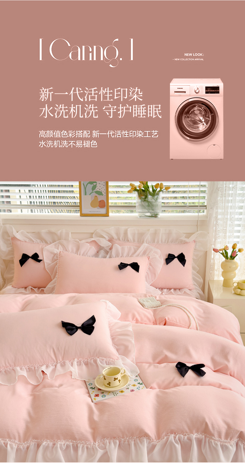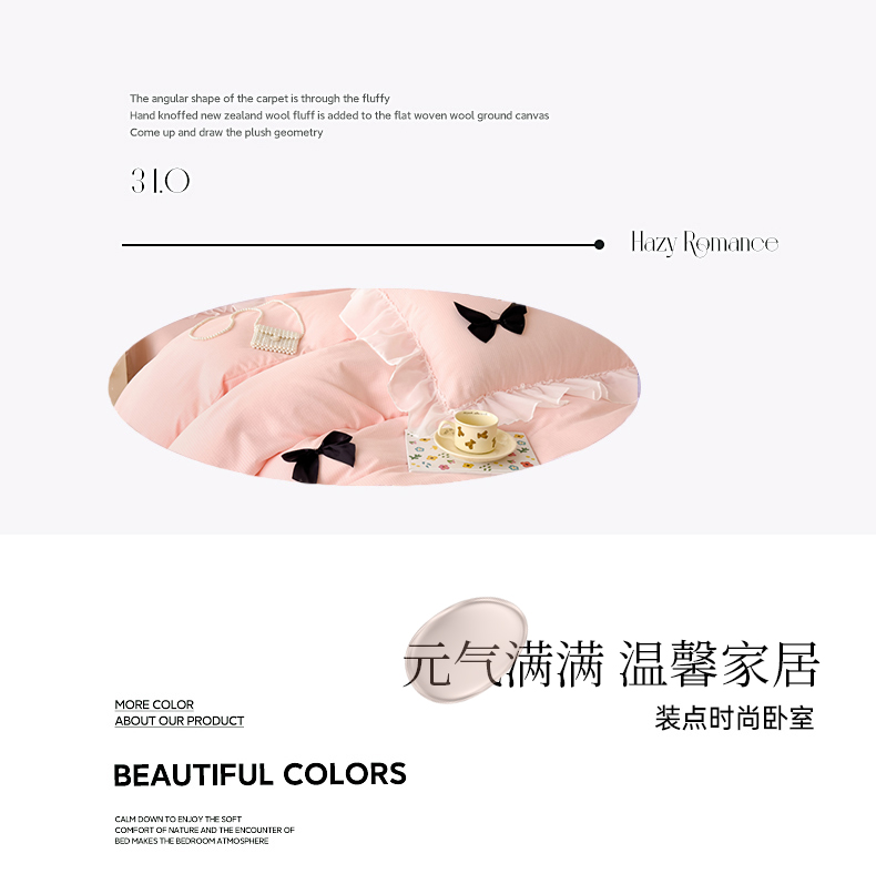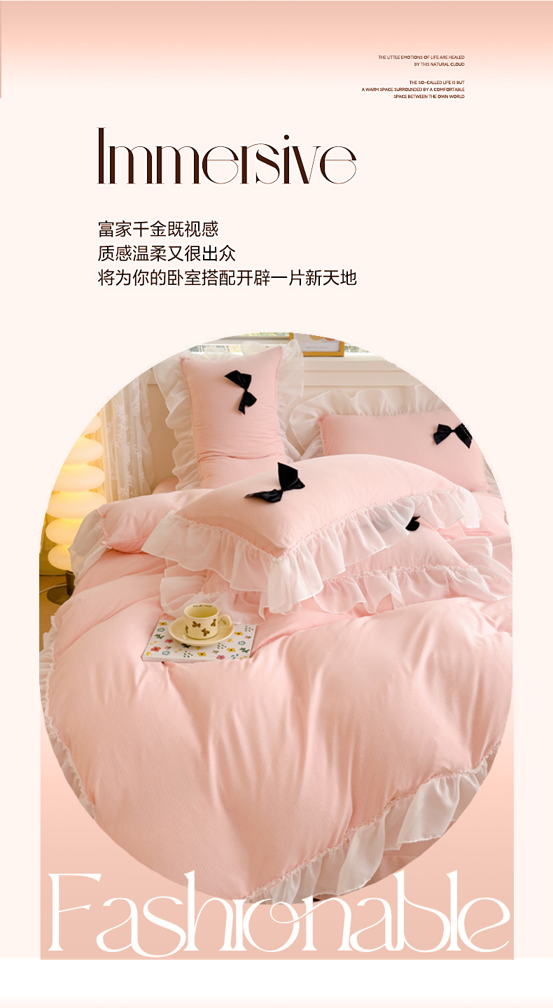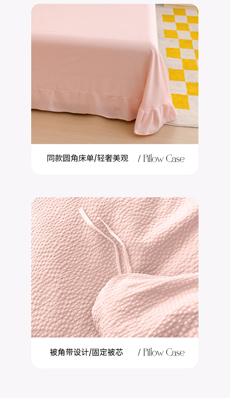 商品名称:(买家秀 爆款花型不断货)A类母婴级少女风韩式公主风泡泡纱床上四件套韩式泡泡棉花边四件套水洗棉四件套 泡泡棉-粉玉