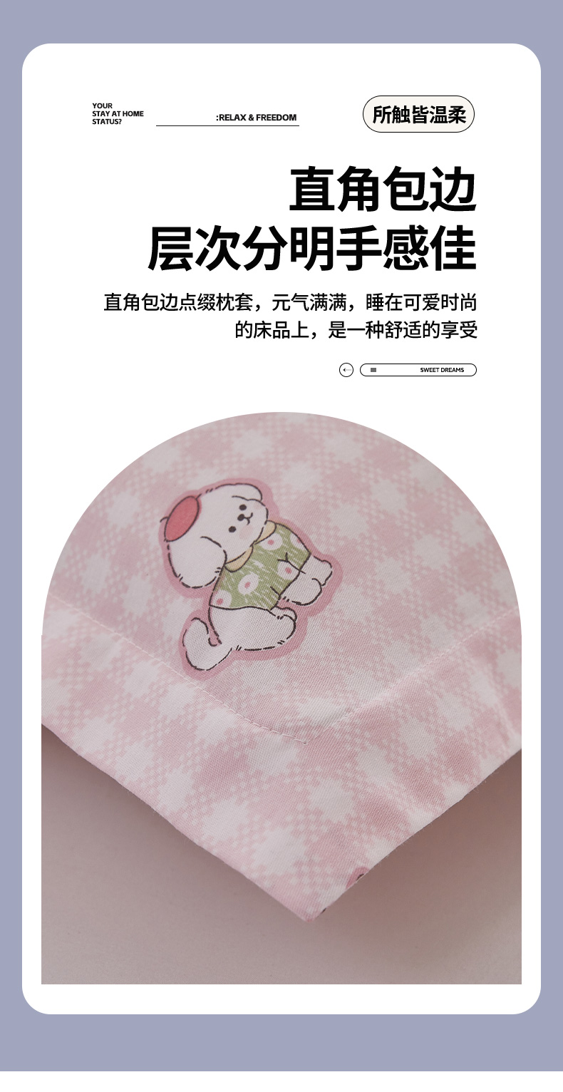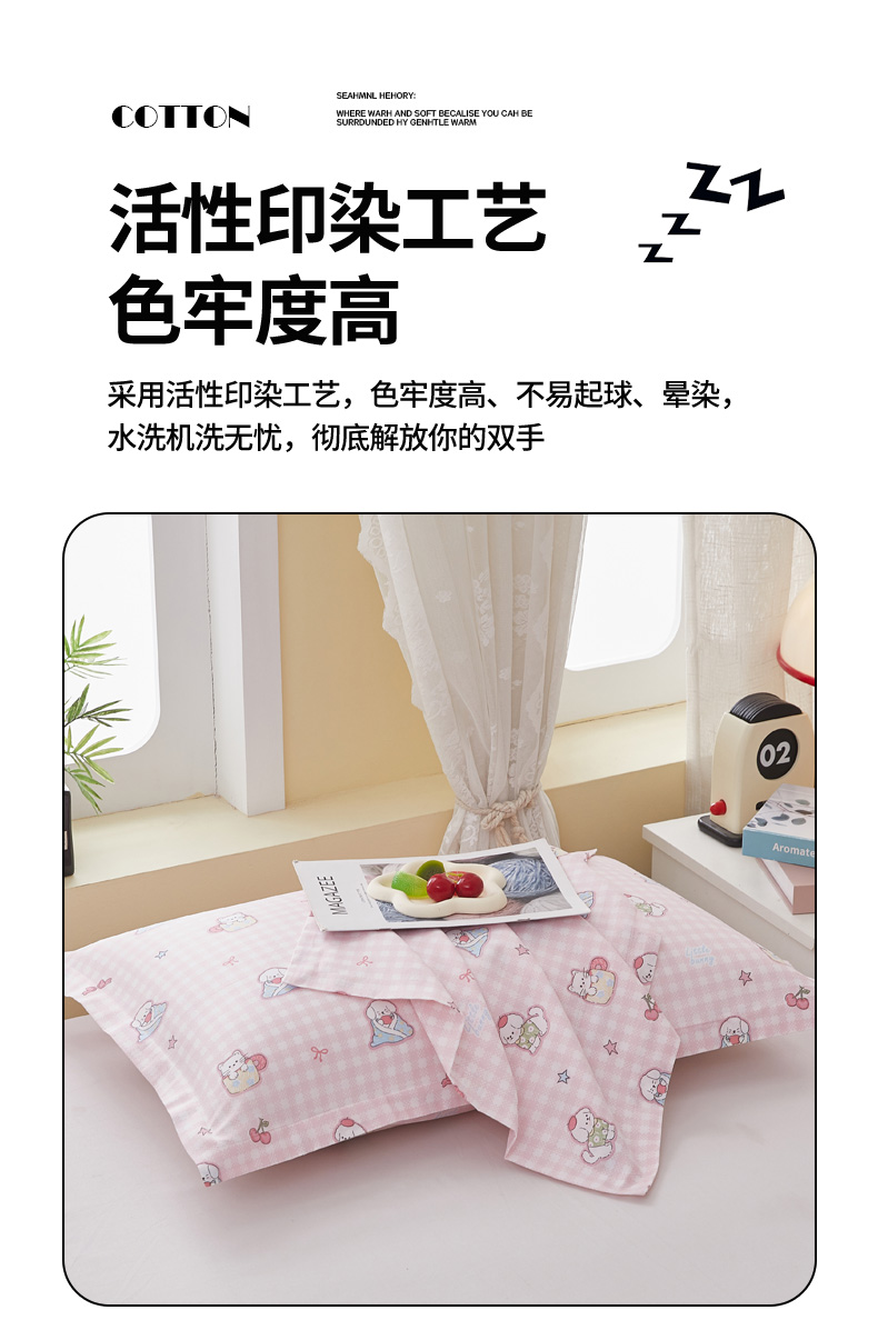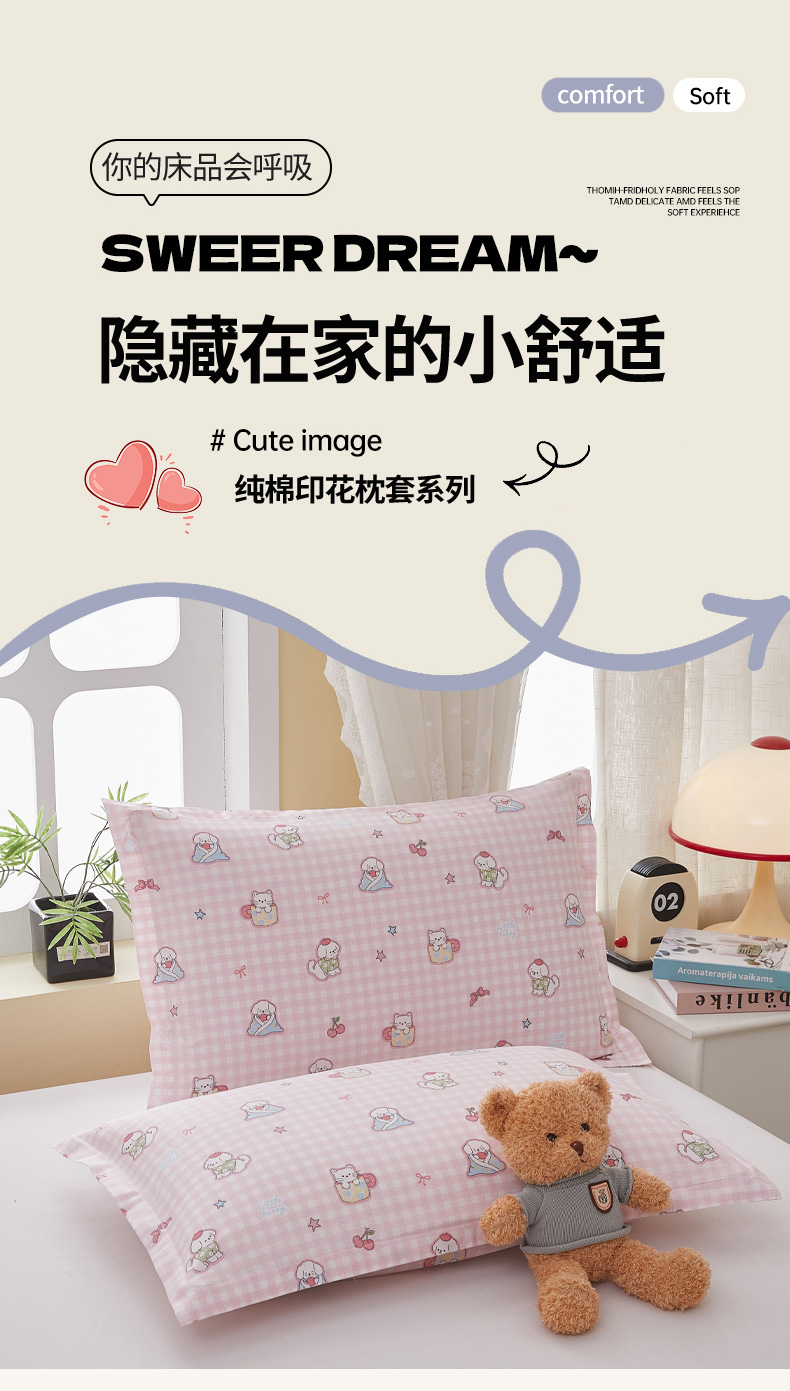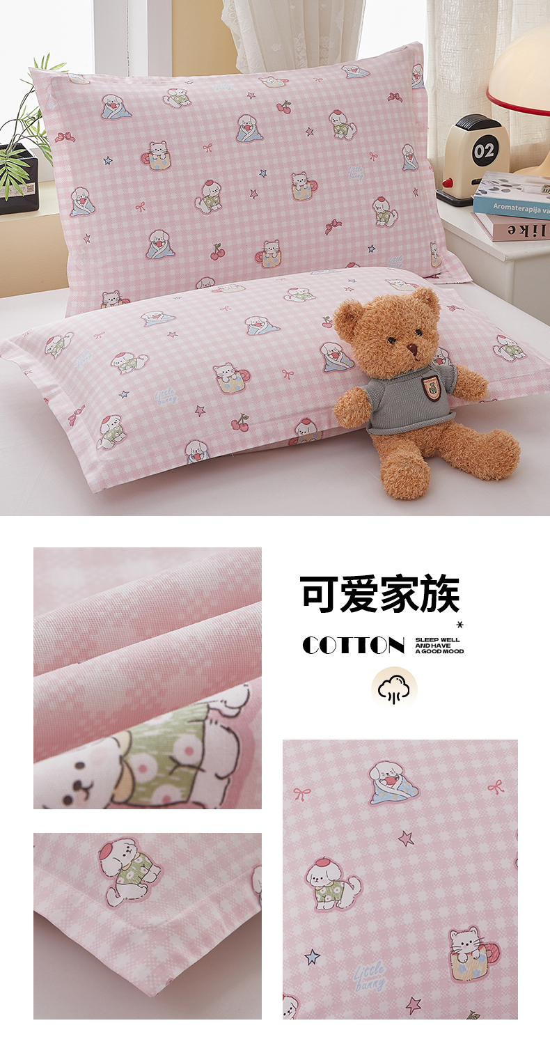 商品名称: 翎盈家纺 2025新款ins风小清新纯棉印花枕套 可爱家族
