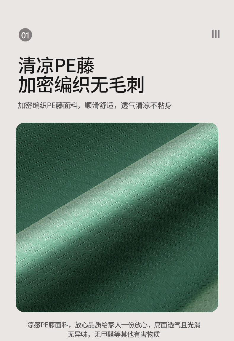 当前位置: 91家纺网 > 商品网购 > 床上用品 > 凉席 > 藤席 > 福来临家纺 2025新款凉感PE藤席 PE藤席-绿
