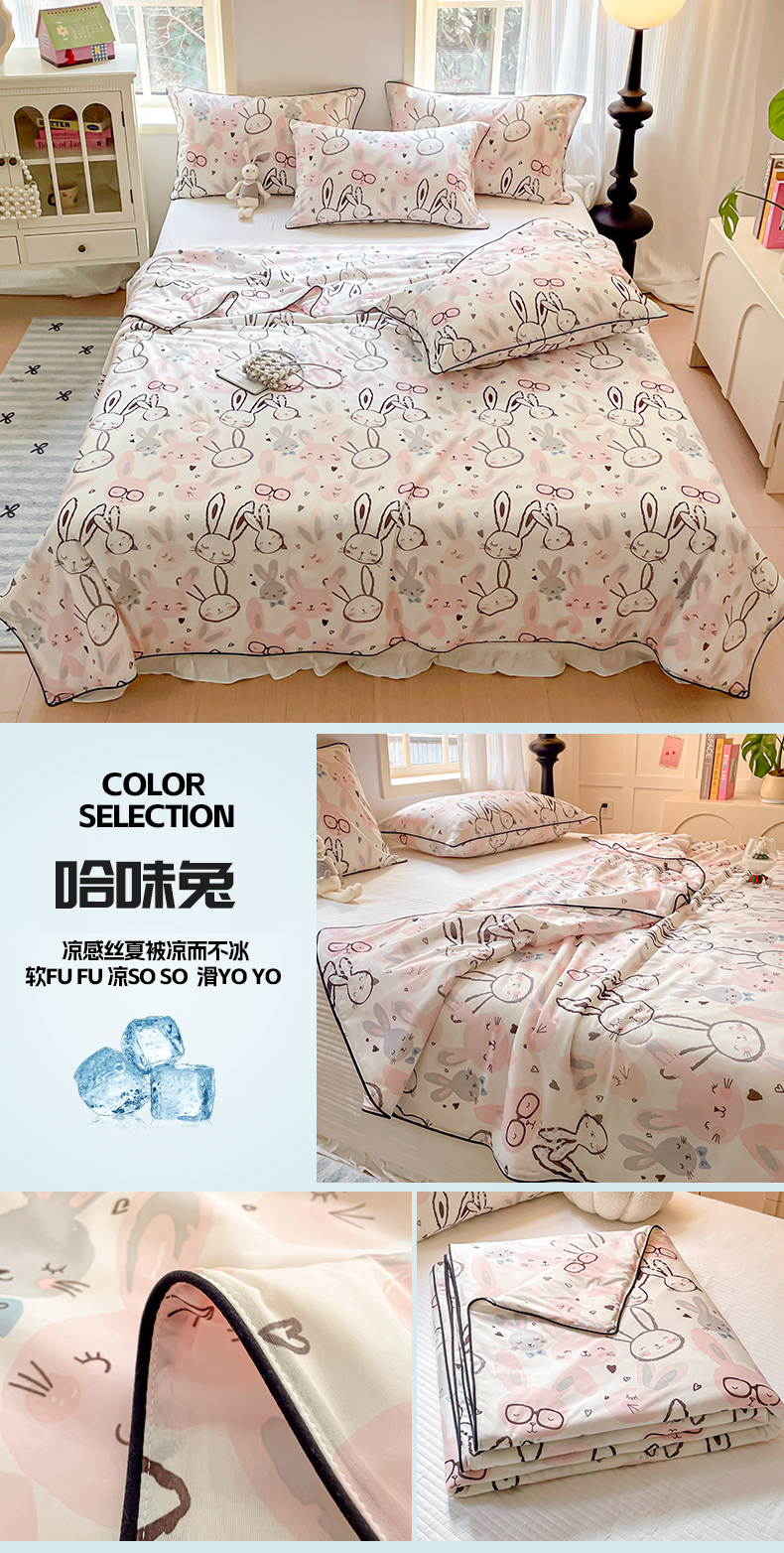 • 91家纺网 家纺一手货源 找家纺 优悦生活馆 2025新款凉感丝夏被夏凉被空调被 哈味兔