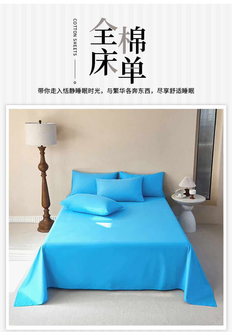 商品名称:期遇2025新款13374纯色全棉床单 青蓝
