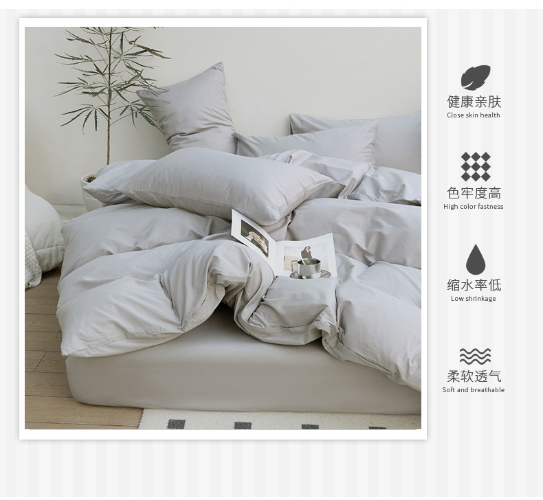 (总)期遇2025新款全棉13374纯色四件套,粉玉,海棠红,幻影灰,橘黄,卡其,嫩绿,苹果绿,青蓝,香芋紫,洋红
