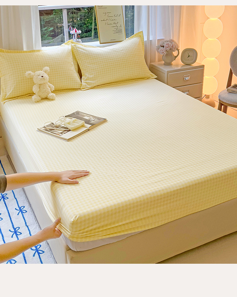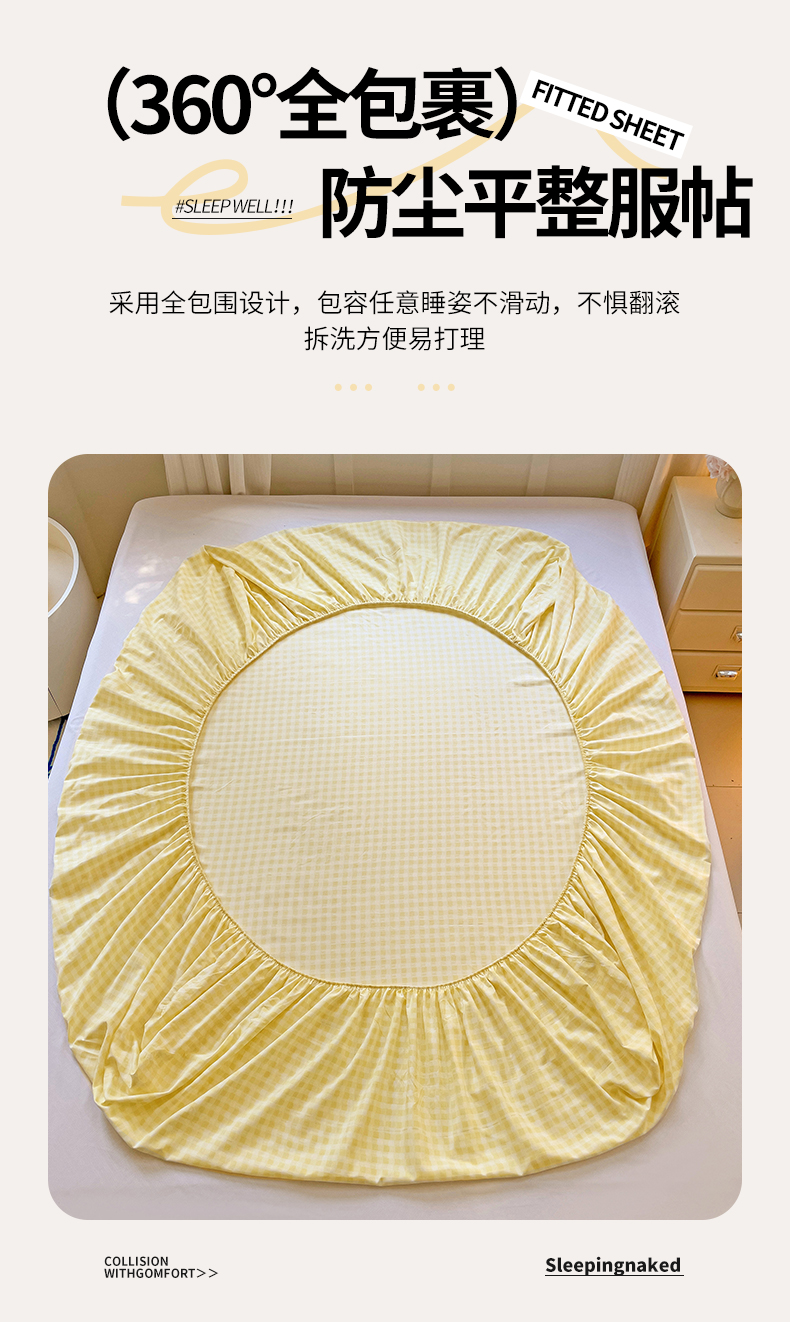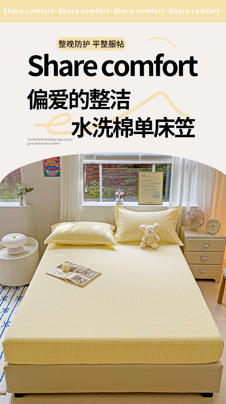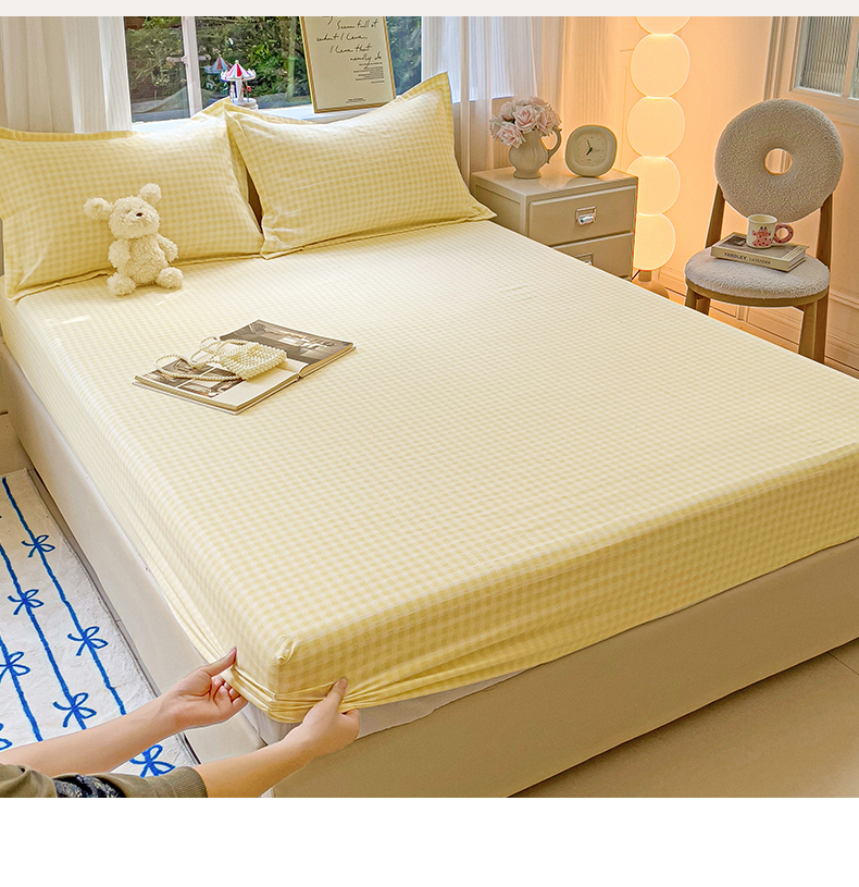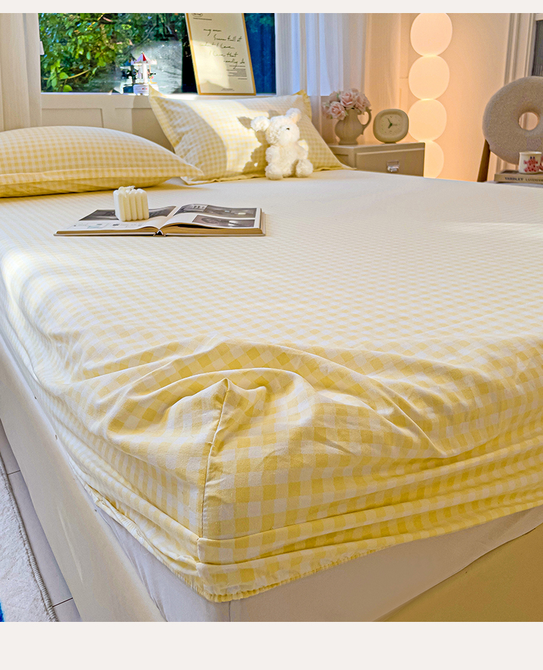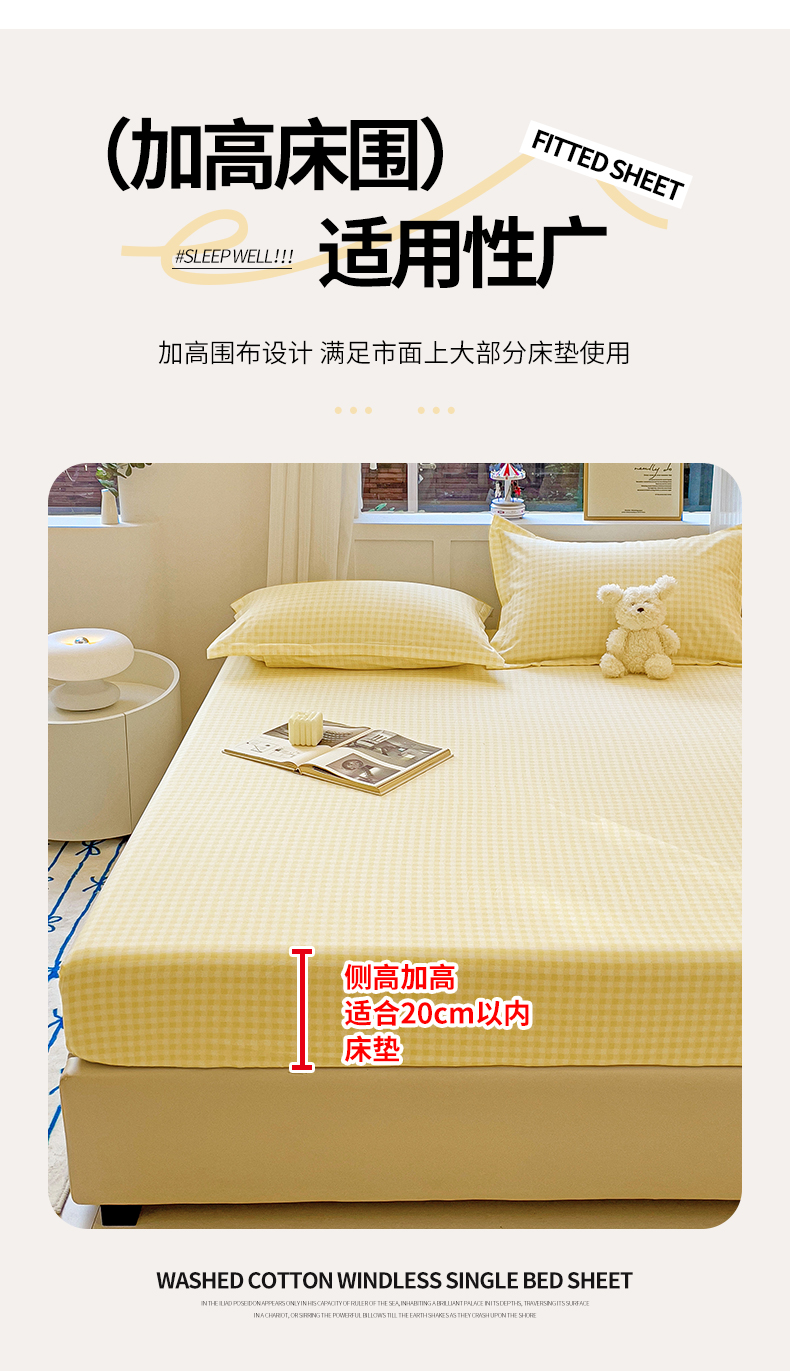恬澳家纺 2025新款森系水洗棉无印风单床笠场景二 森系-黄格