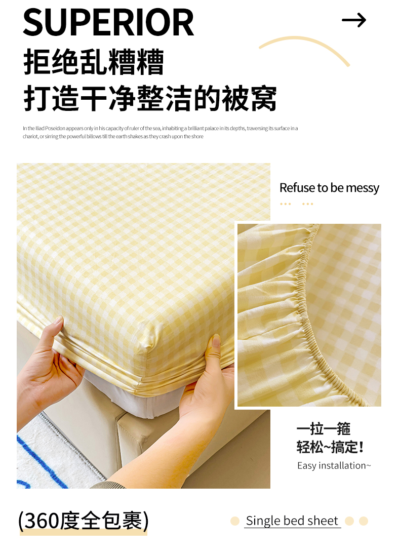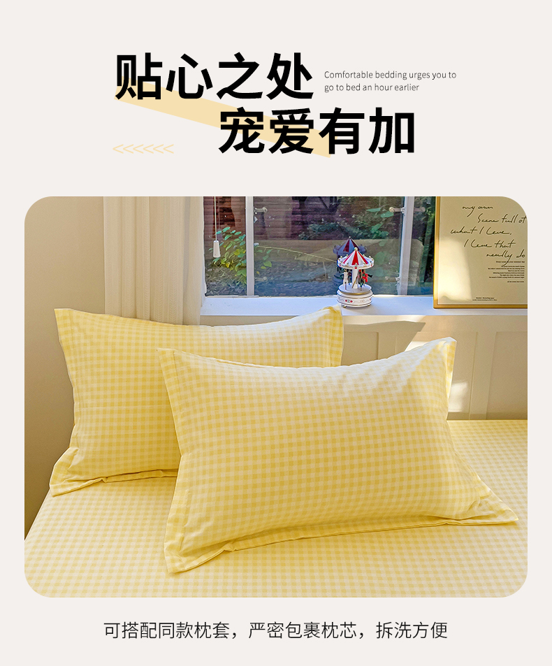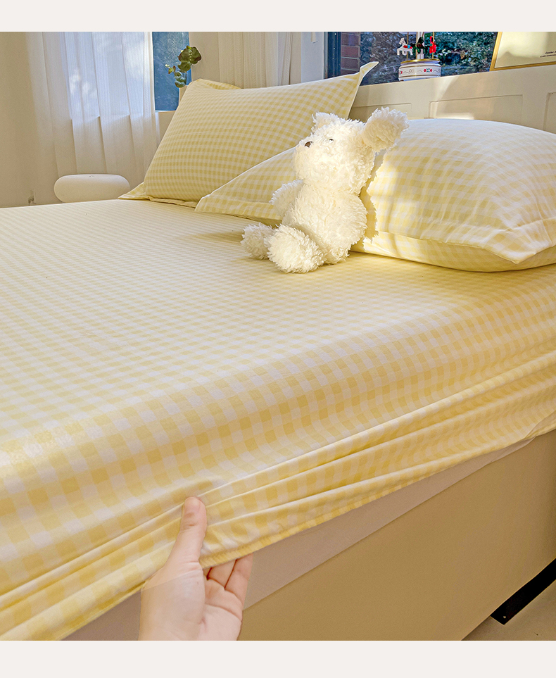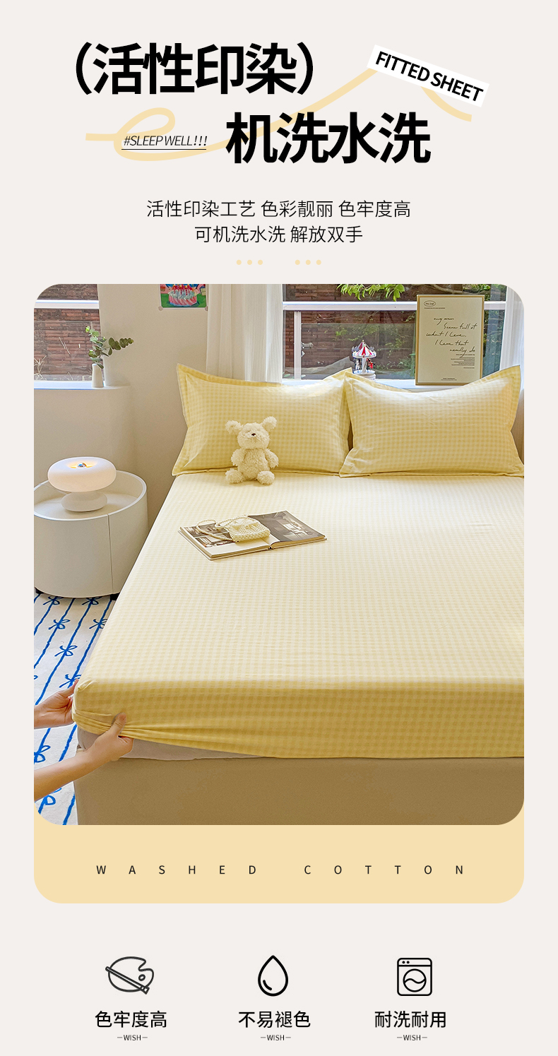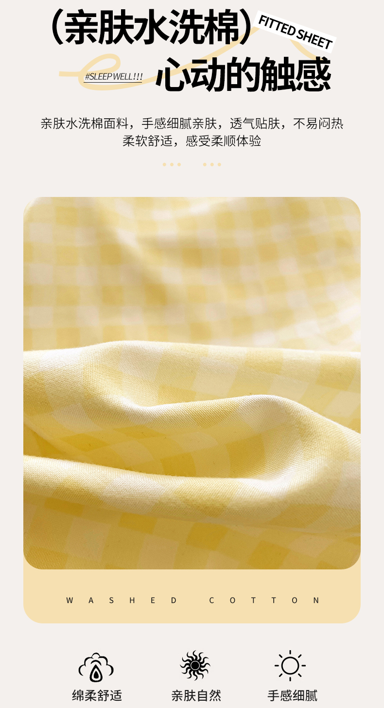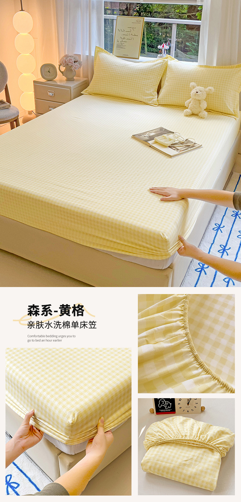 商品名称:恬澳家纺 2025新款森系水洗棉无印风单床笠场景二 森系-黄格