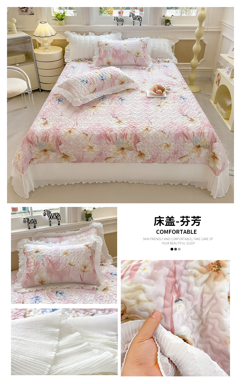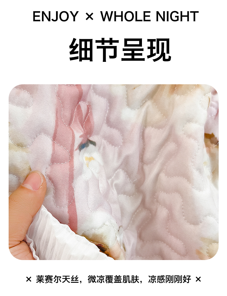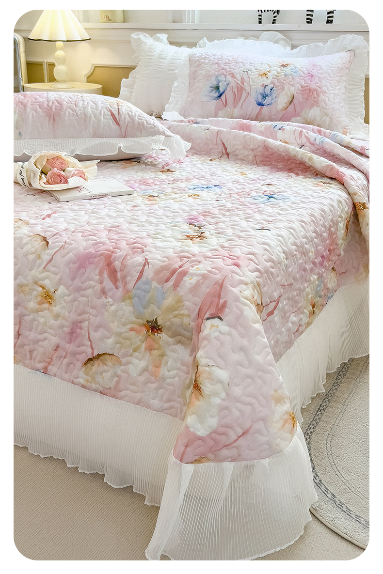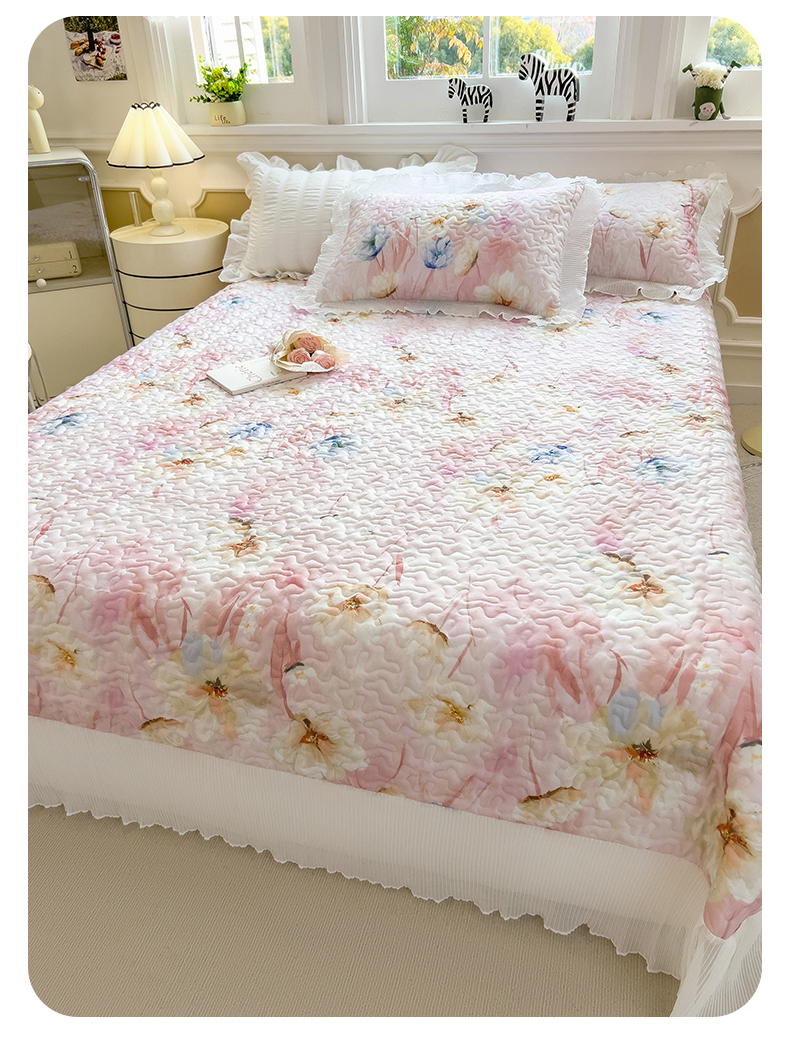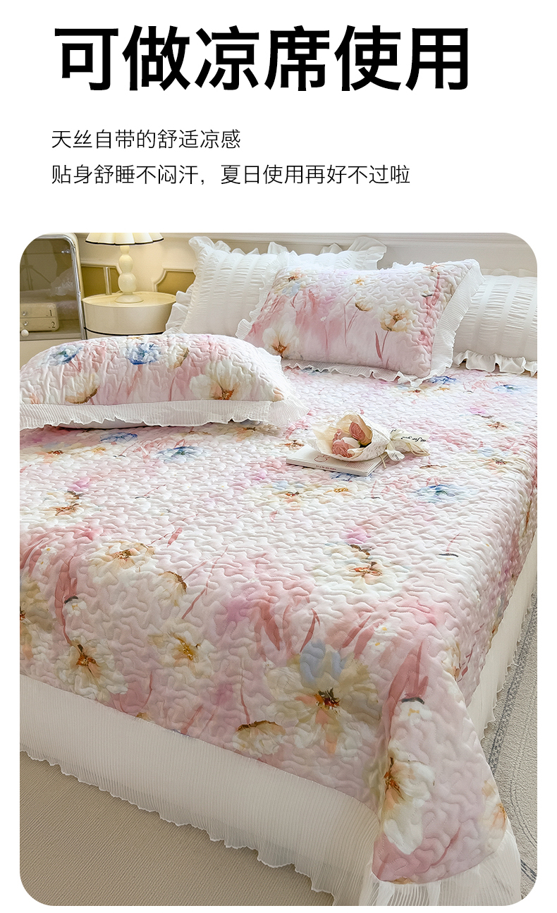 商品名称:迪梦思家纺 2025新款A类莱赛尔兰精天丝韩版印花床盖床裙床褥夏被 床盖-芬芳