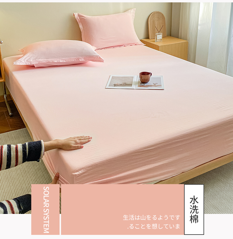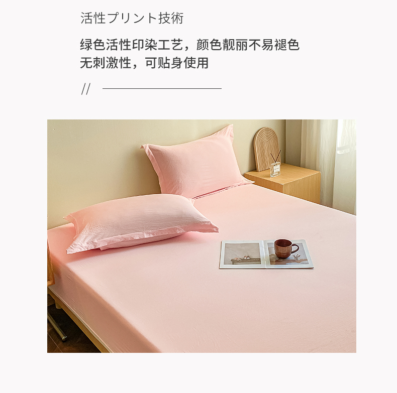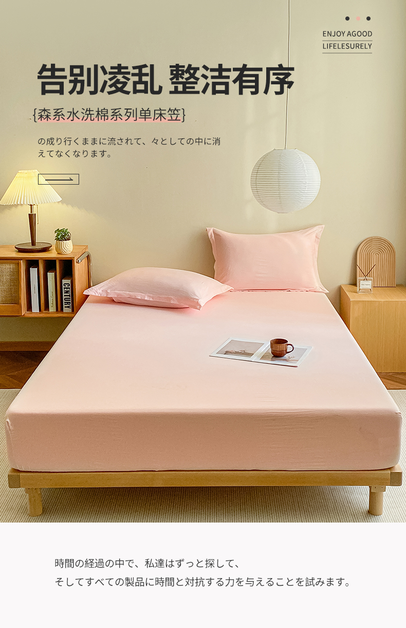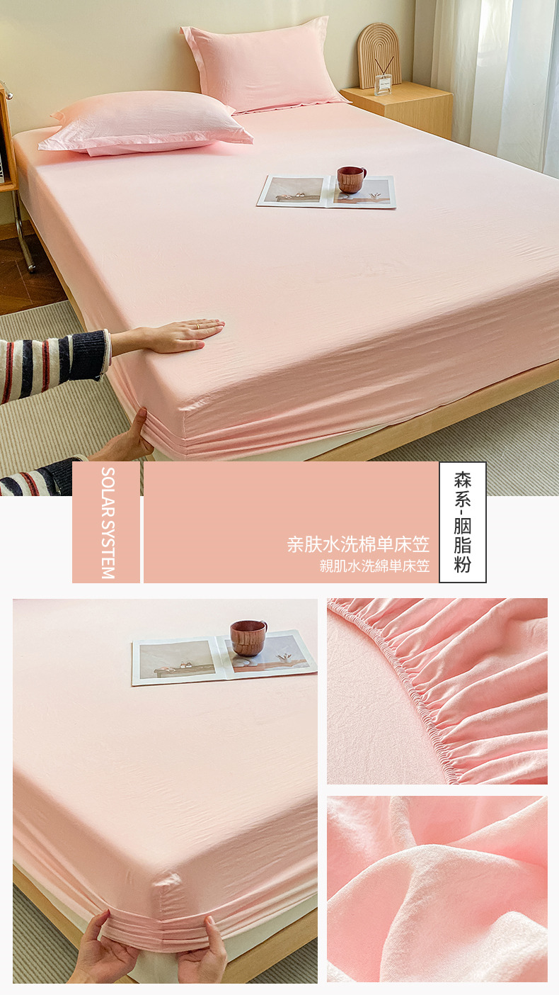恬澳家纺 2025新款森系水洗棉无印风单床笠场景三 森系-胭脂粉