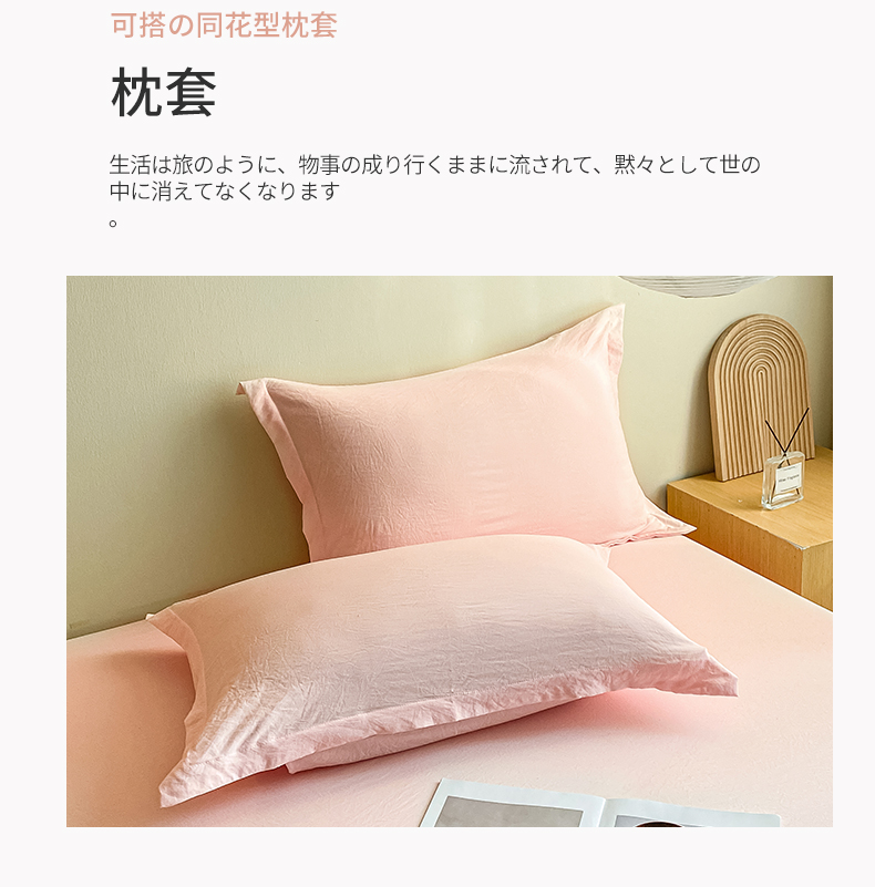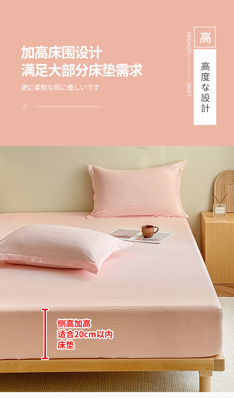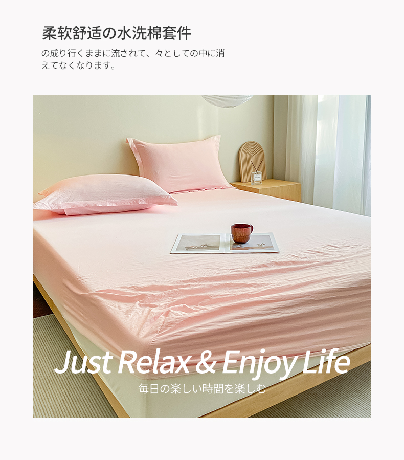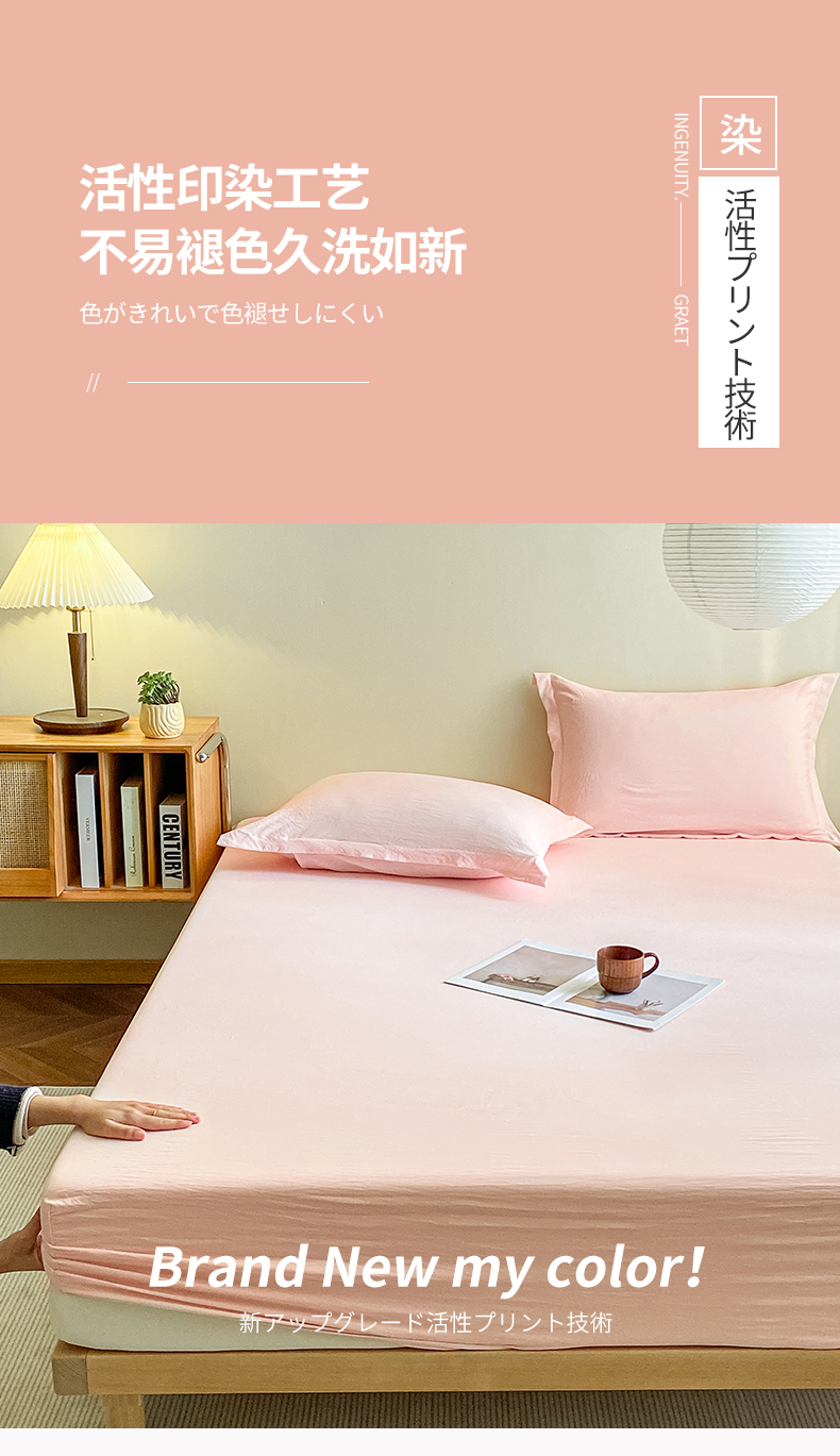 恬澳家纺 2025新款森系水洗棉无印风单床笠场景三 森系-胭脂粉