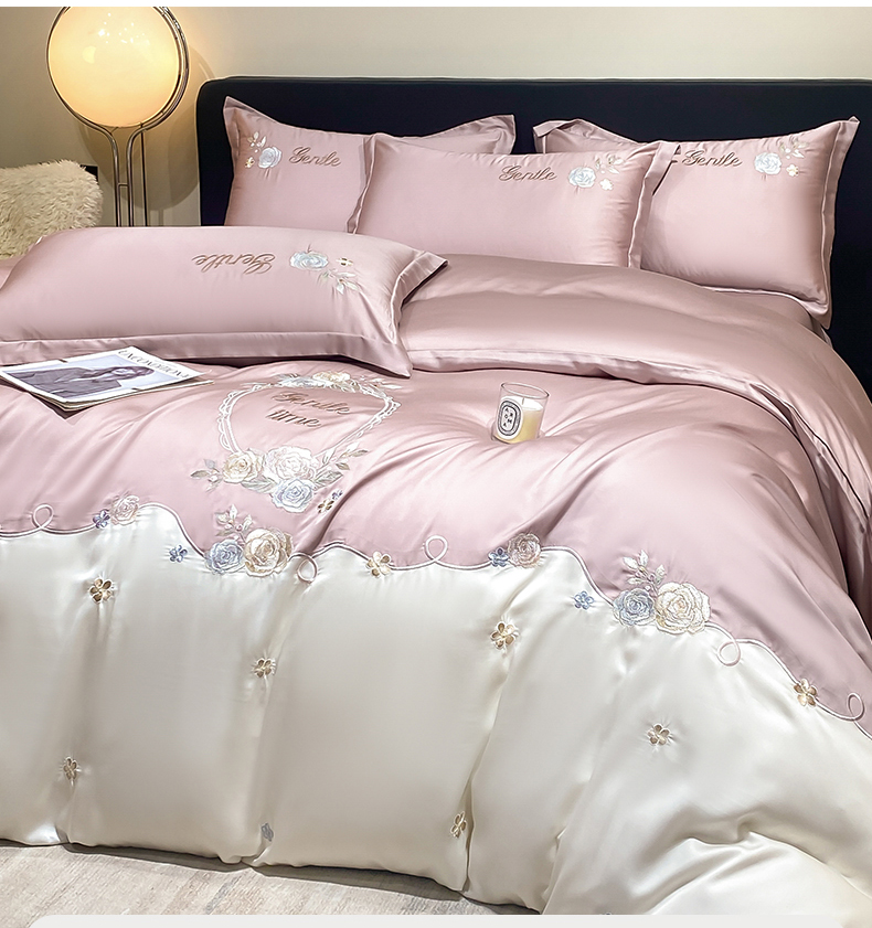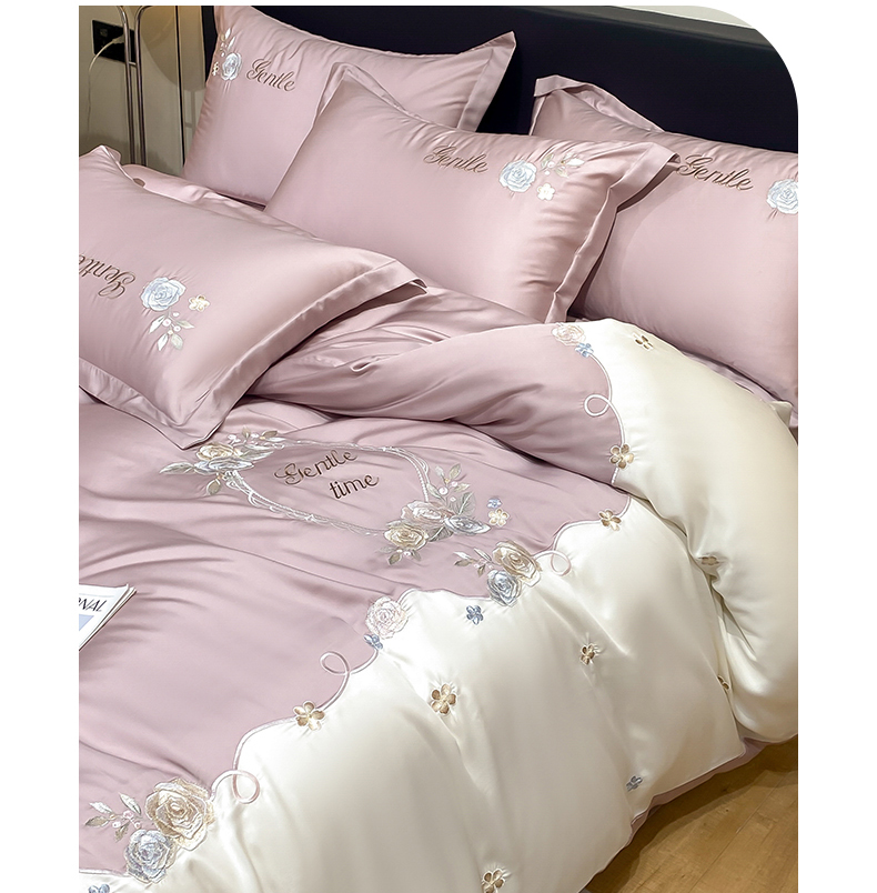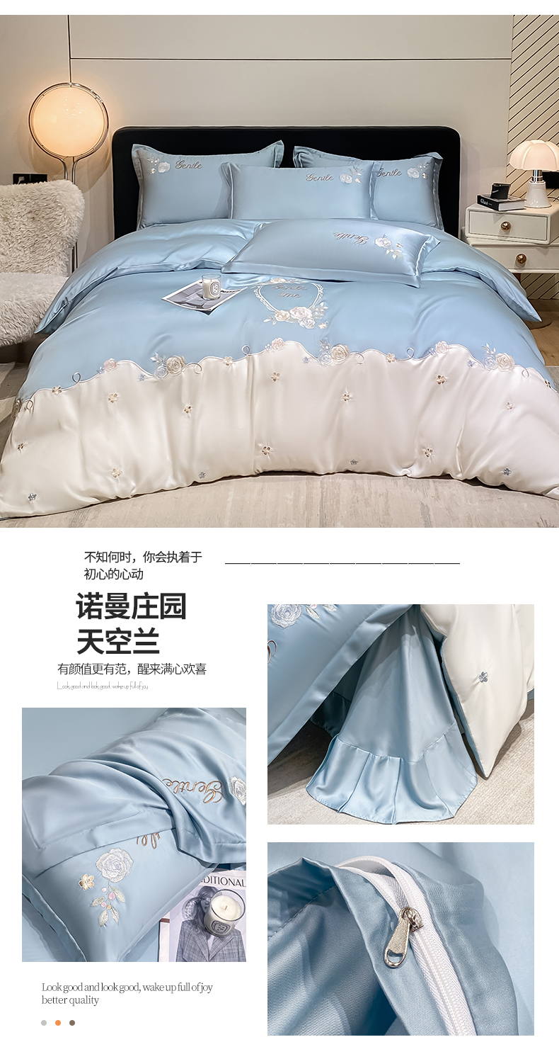 (总)爱家 2023新款超柔雪莲天丝刺绣四件套-花开半夏系列,花开半夏-宾利蓝,花开半夏-公主粉,花开半夏-奶油黄,花开半夏-奶油绿,花开半夏-优雅紫