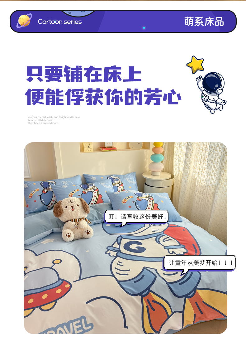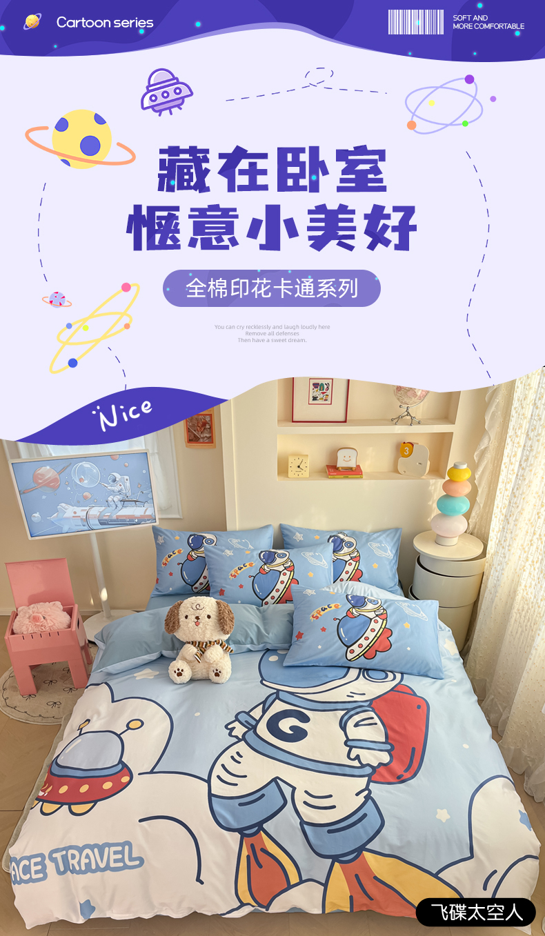 当前位置: 91家纺网 > 商品网购 > 床品套件 > 四件套 > 全棉普通四件套 > 金爱家 2025新款太空人纯棉四件套 飞碟太空人