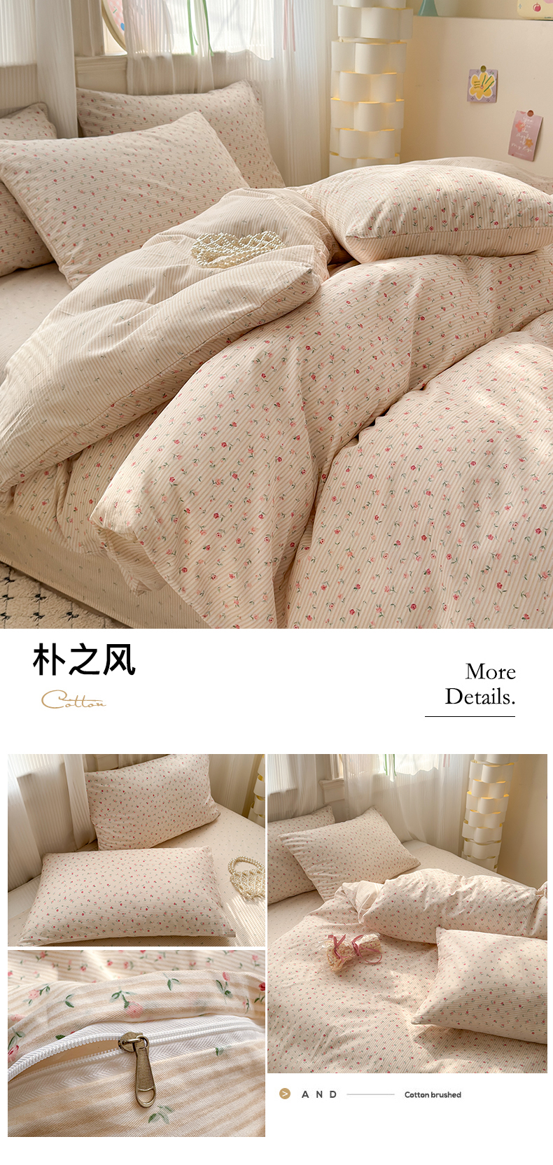 清雅福 2025全棉13372小清新四件套和单被套早春系列第二批--单枕套 朴之风