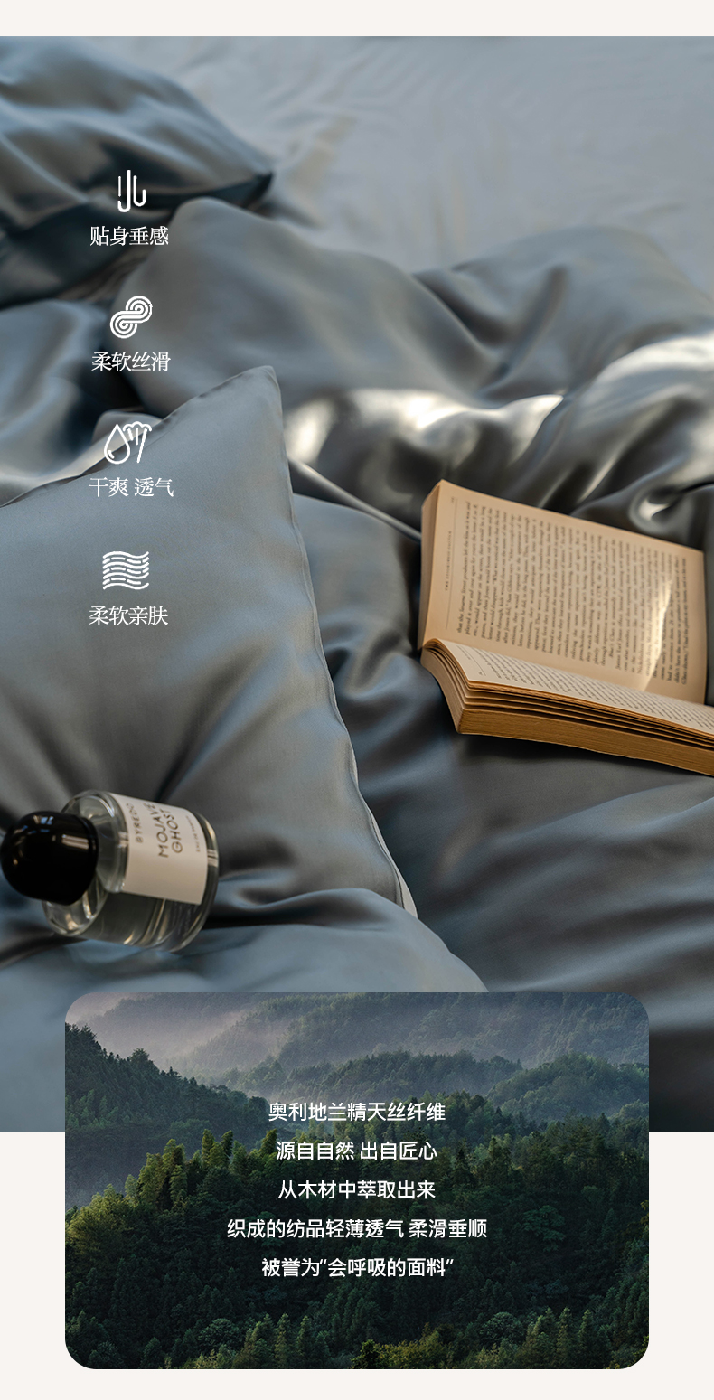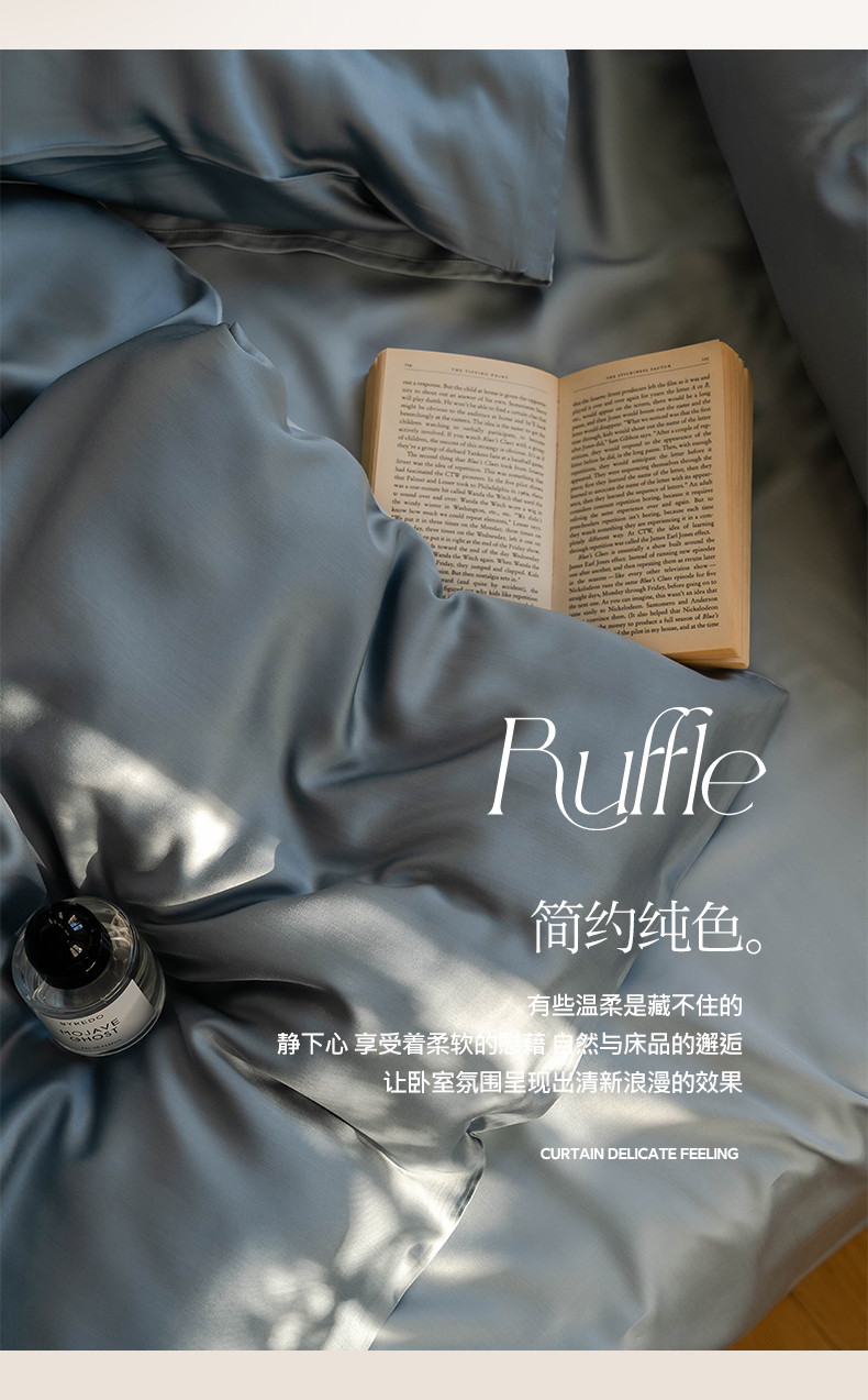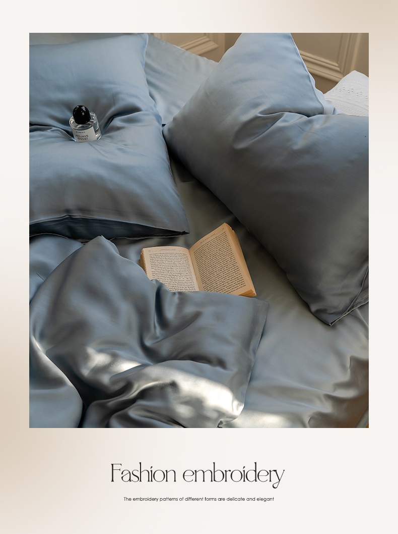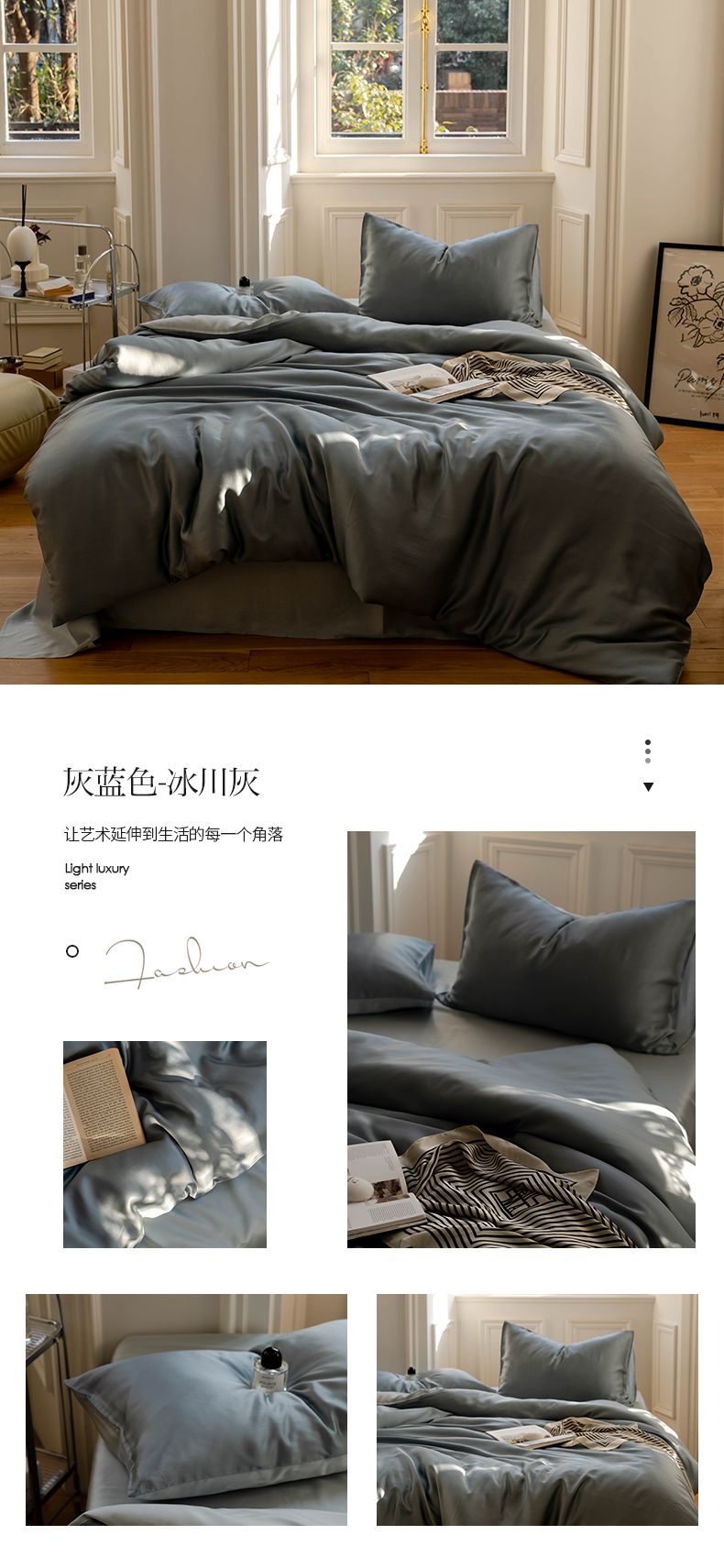 商品名称:帅露 2025新款60S纯色双拼四件套 灰蓝色-冰川灰