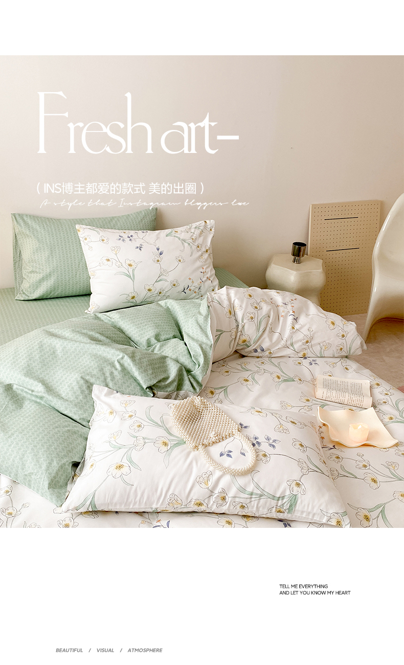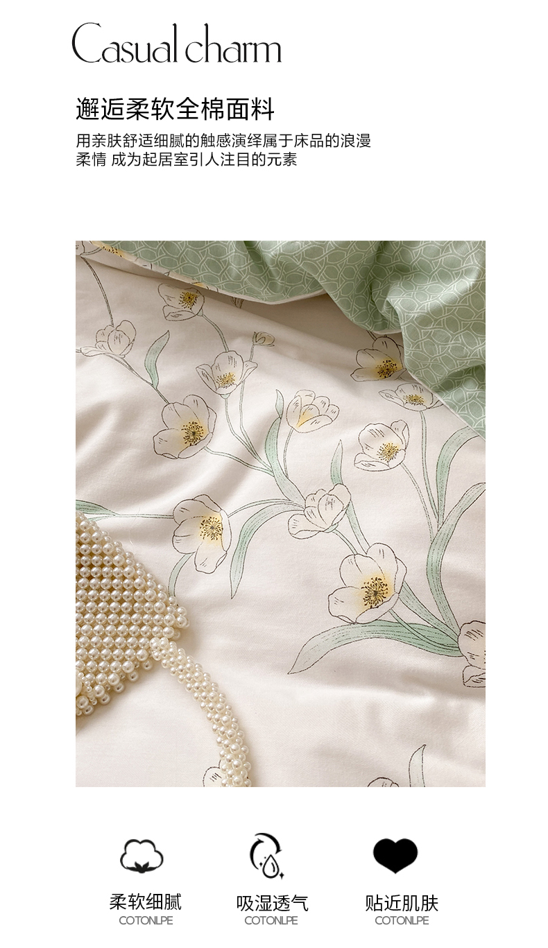 商品名称:帅露 2025开春新品全棉喷气13070小清新印花纯棉全棉四件套 沁园春