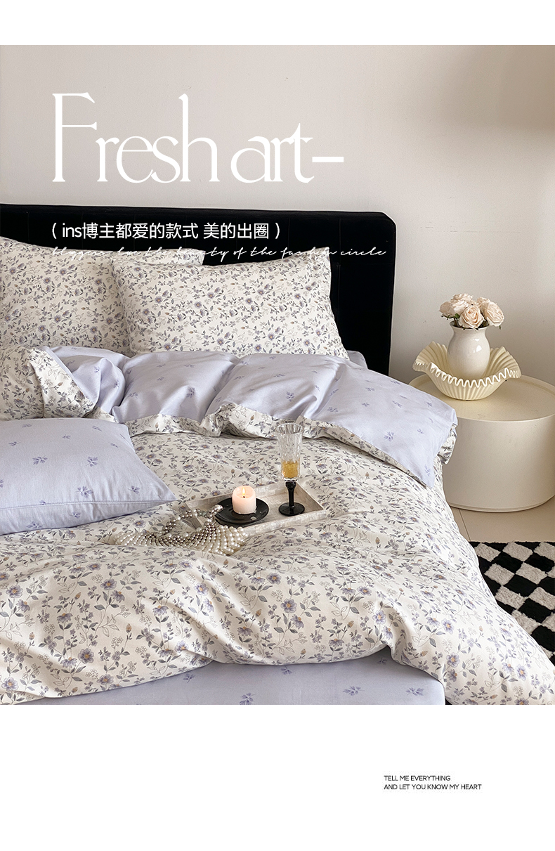 商品名称:帅露 2025开春新品全棉喷气13070小清新印花纯棉全棉四件套 芷兰