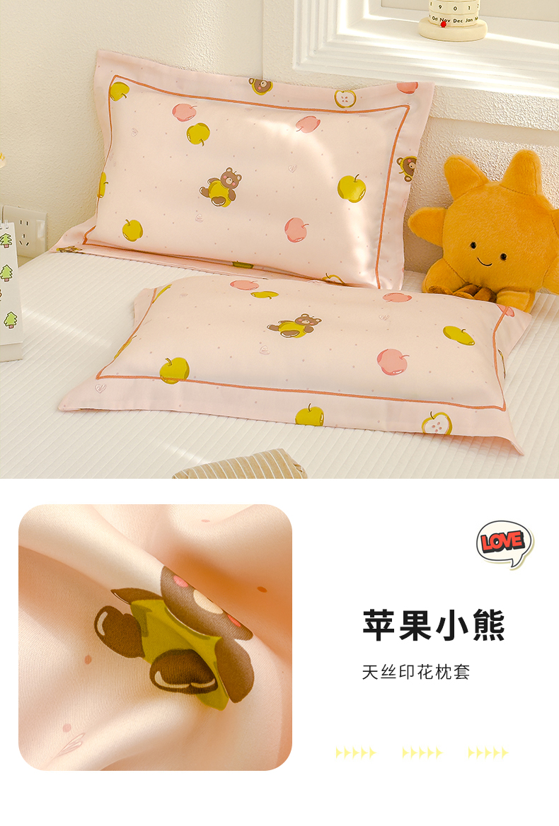 (总)良佐生活 2025新款50支夏天A类莱赛尔天丝枕套学生卡通儿童枕套冰丝枕头套, 彩虹恐龙, 汽车小镇,蝴蝶结小兔,彩虹小鸭,开心马戏团,爱心兔兔, 海洋伙伴,企鹅北极熊, 苹果小熊,侏罗纪公园