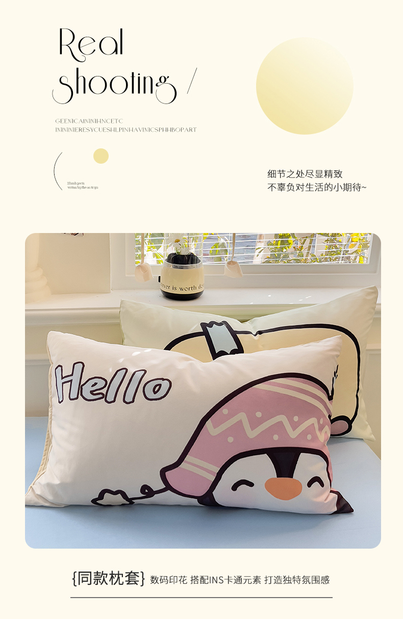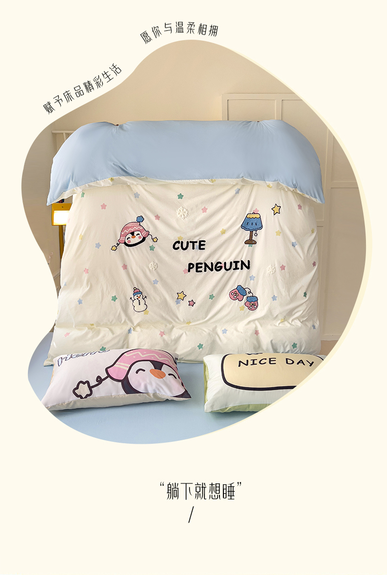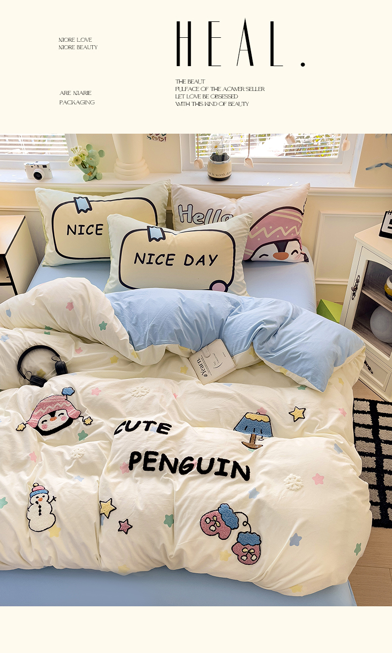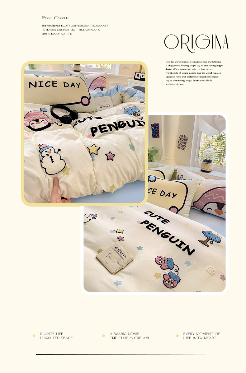 当前位置: 91家纺网 > 商品网购 > 床品套件 > 四件套 > 全棉普通四件套 > 尤米【提供买家秀】2025新款水洗棉大版卡通毛巾绣四件套 企鹅-星星