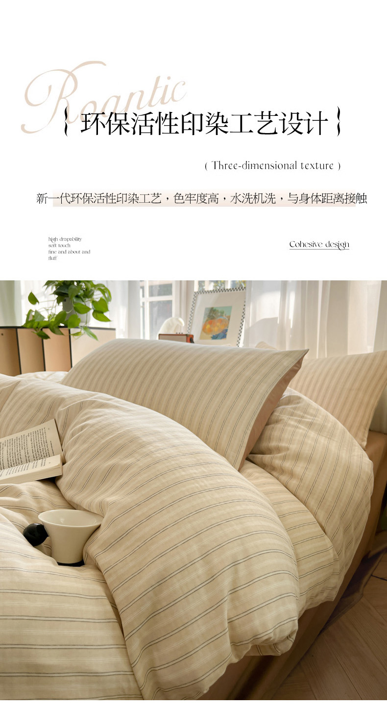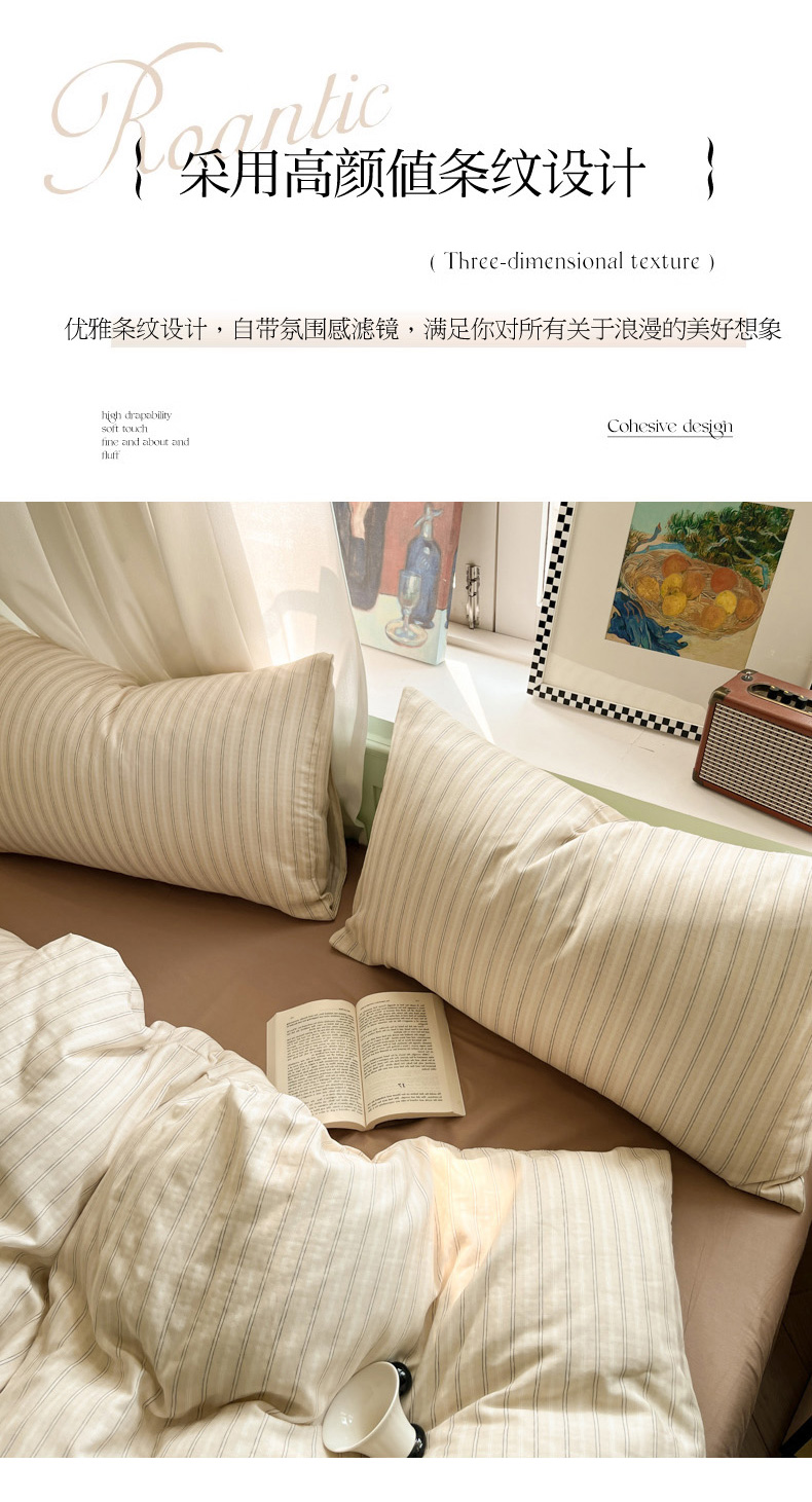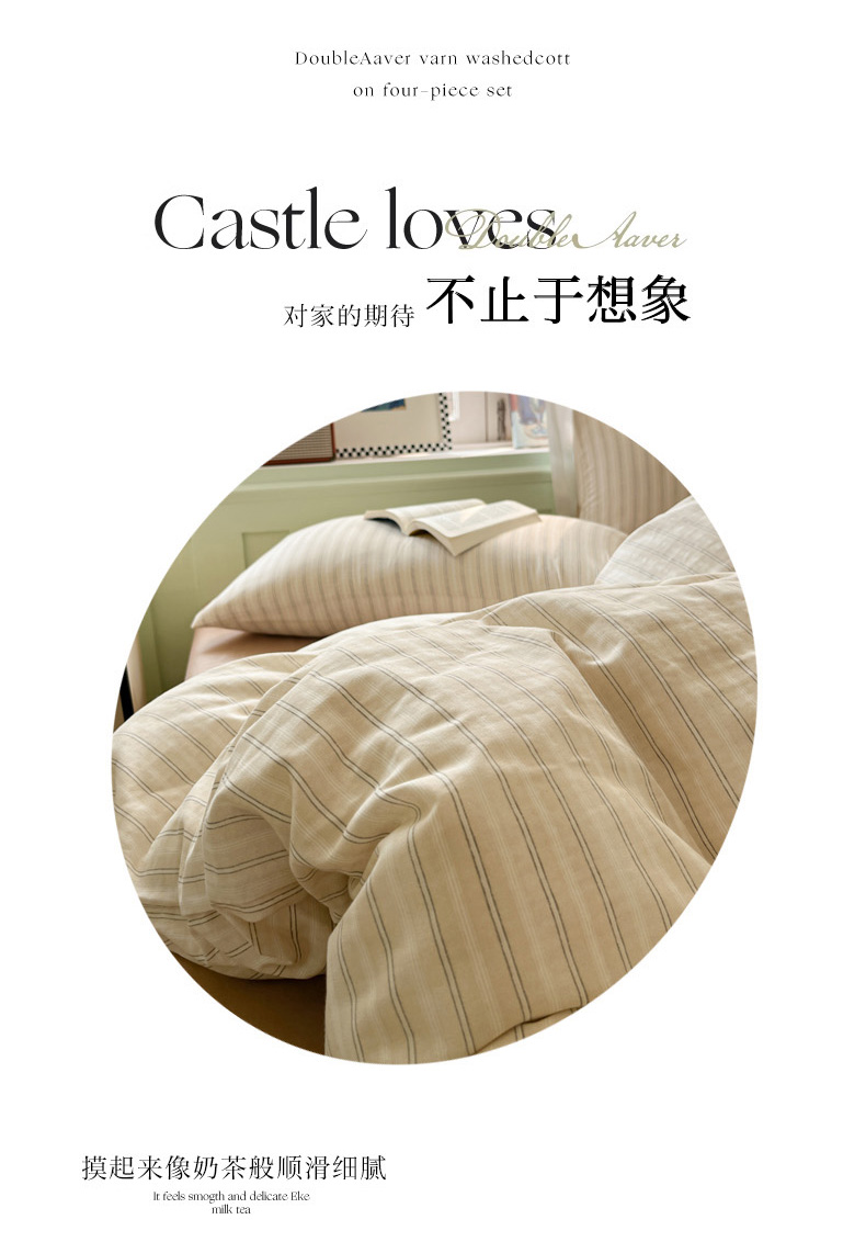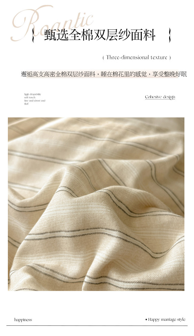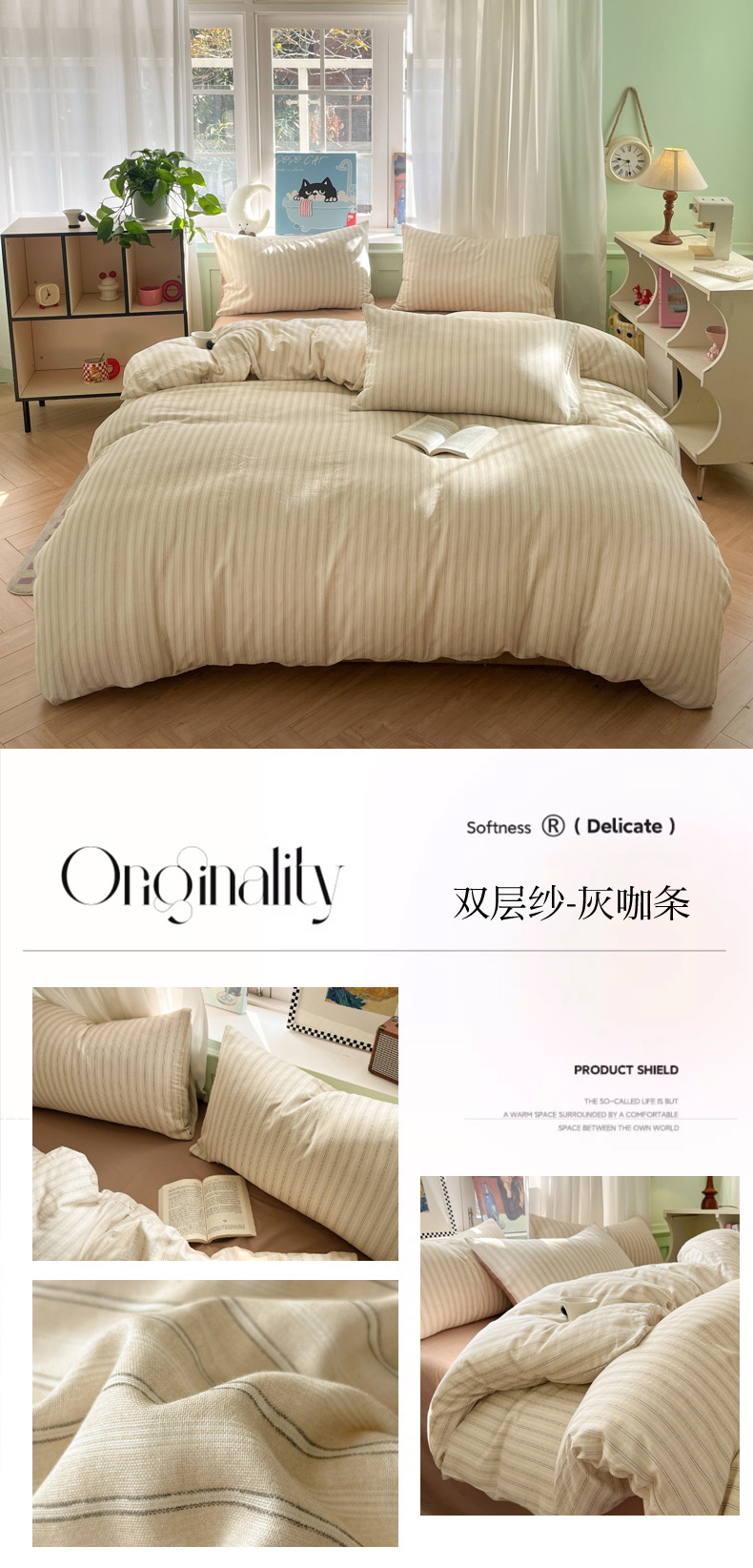 商品名称:眠博士2025新款全棉双层纱 四件套 双层纱-灰咖条