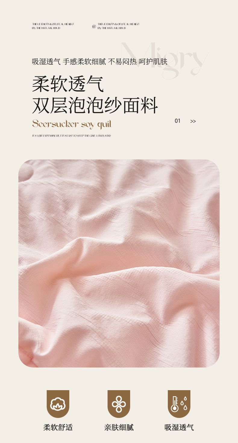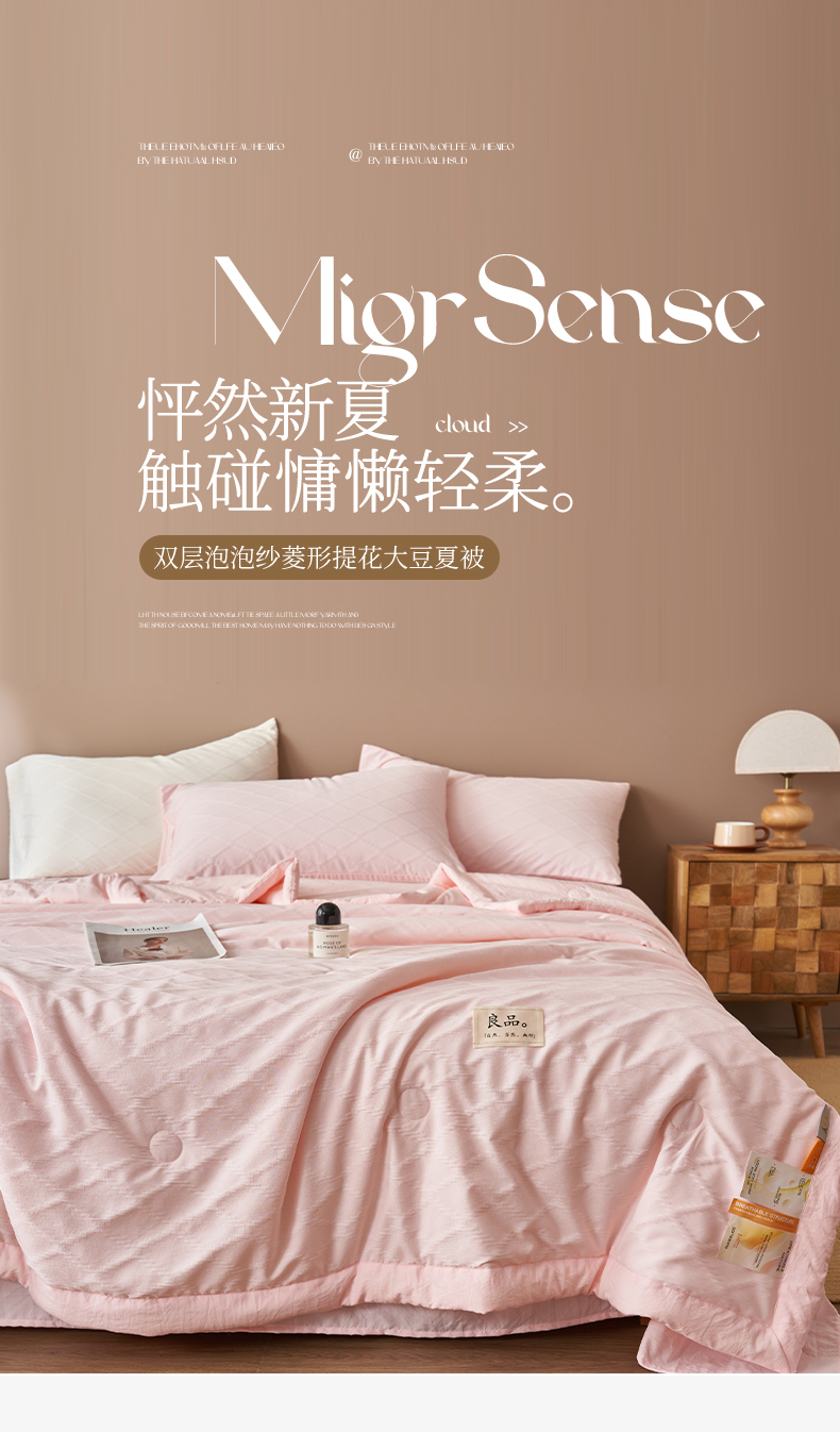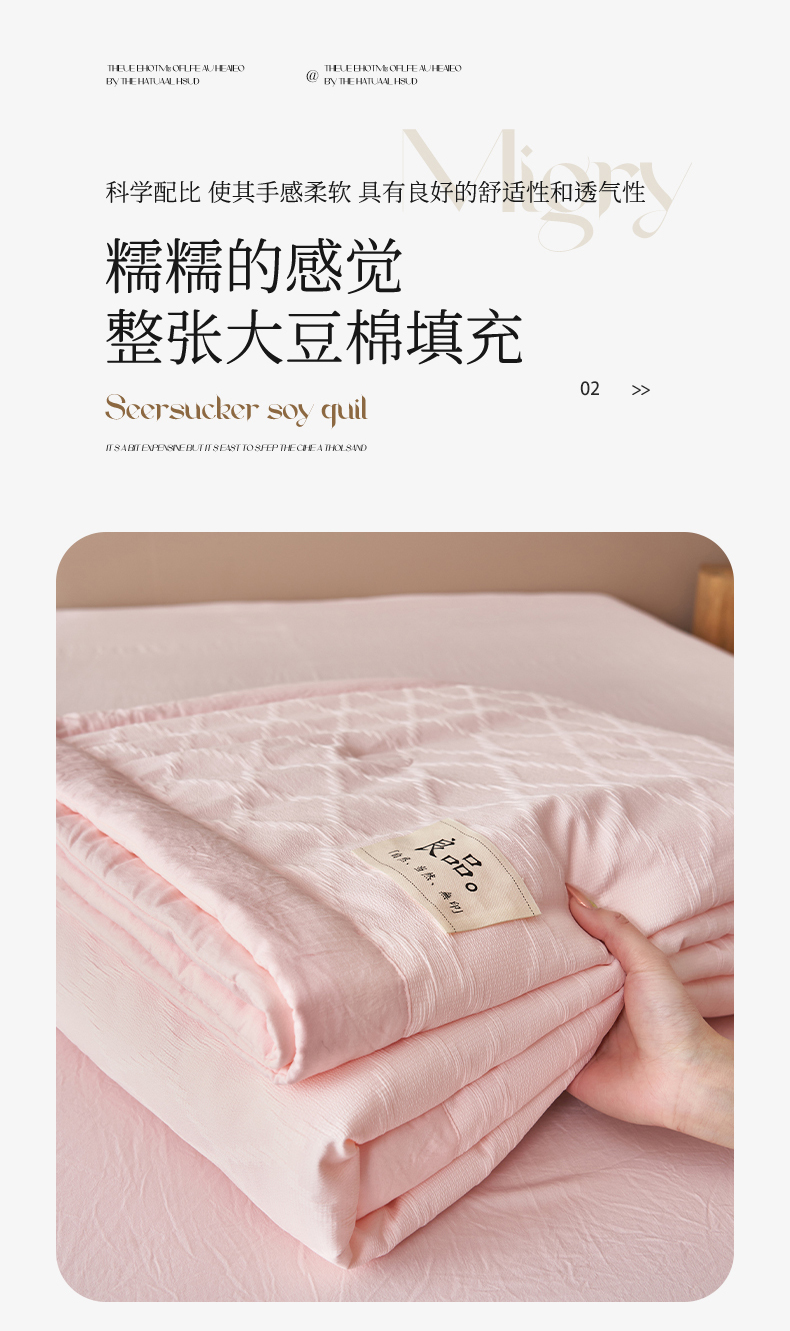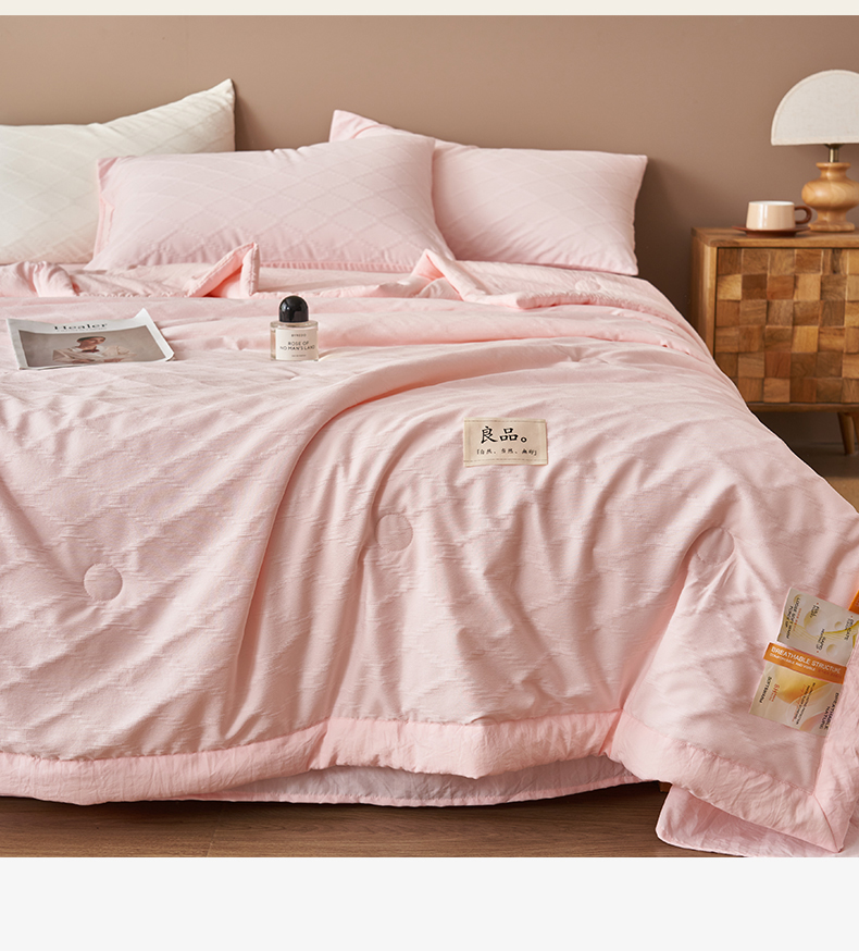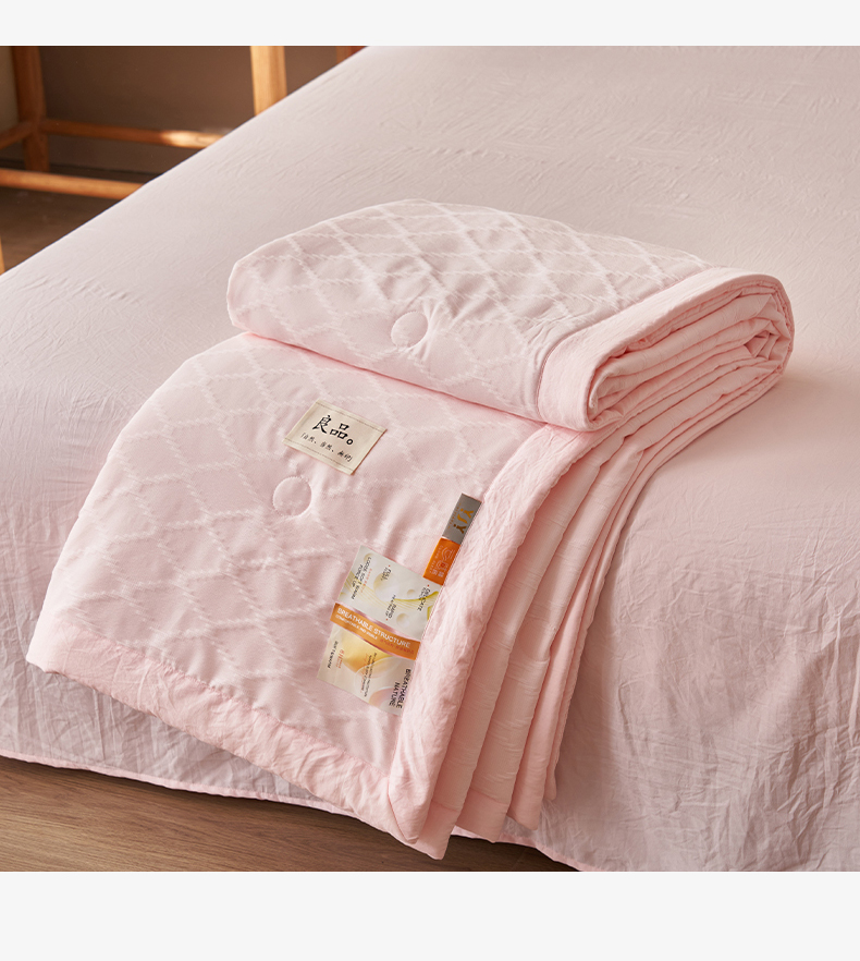 商品名称:一加一家纺2025新款双层泡泡纱菱形提花大豆夏被被子被芯 菱形提花-粉