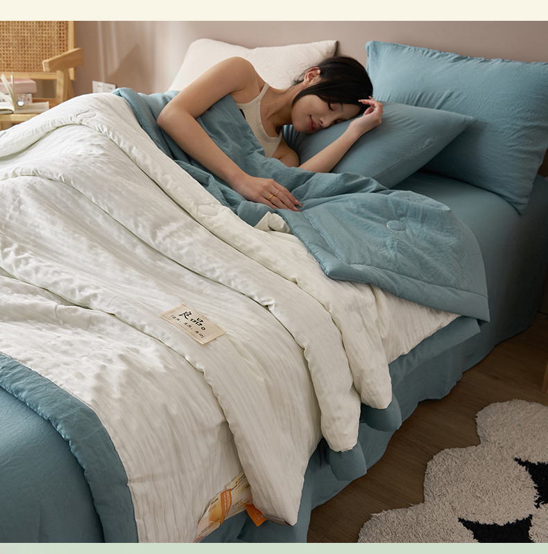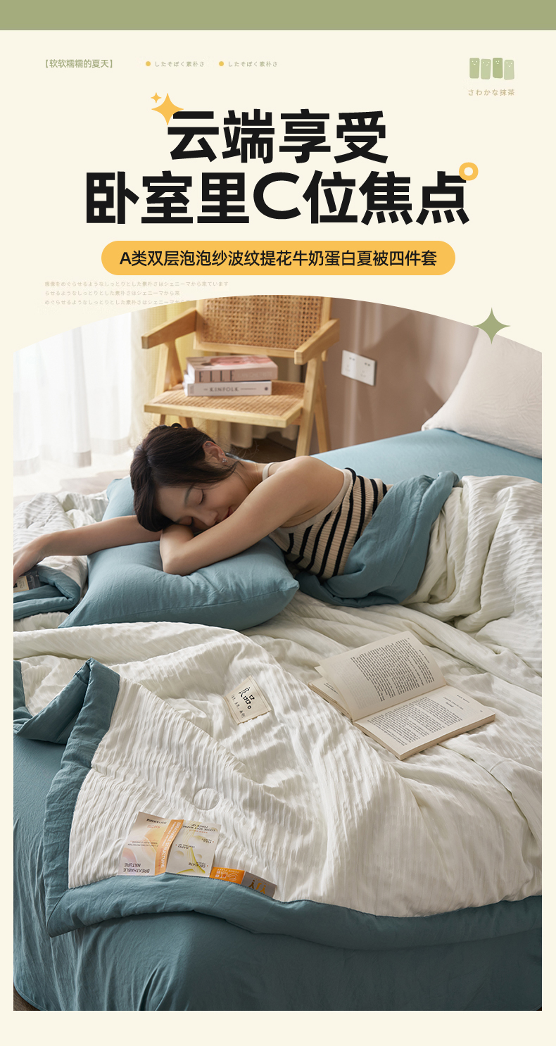 (总)一加一家纺2025新款A类双层泡泡纱波纹提花牛奶蛋白夏被四件套