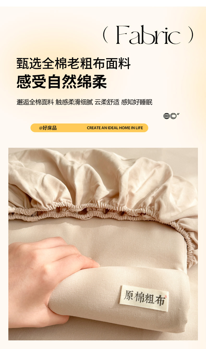 • 91家纺网 家纺一手货源 找家纺 眠博士2025新款全棉老粗布床笠 老粗布床笠-月光咖