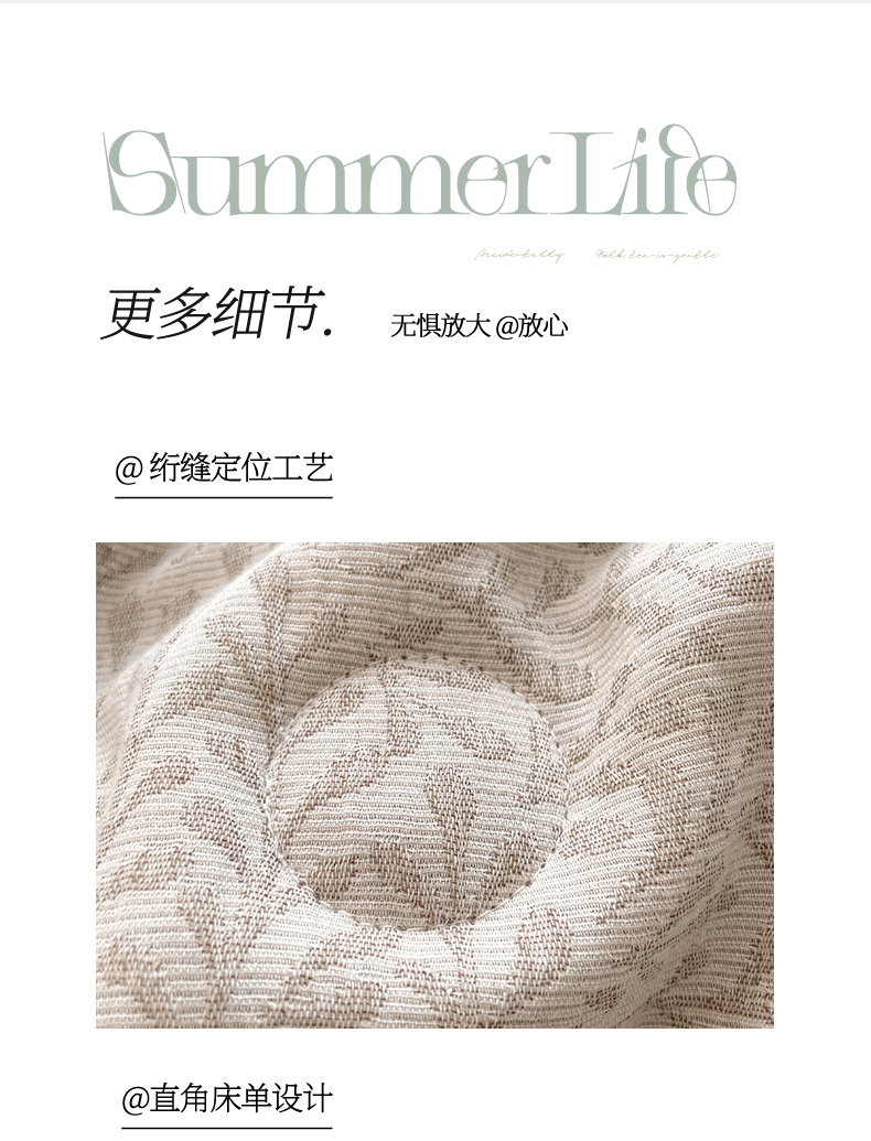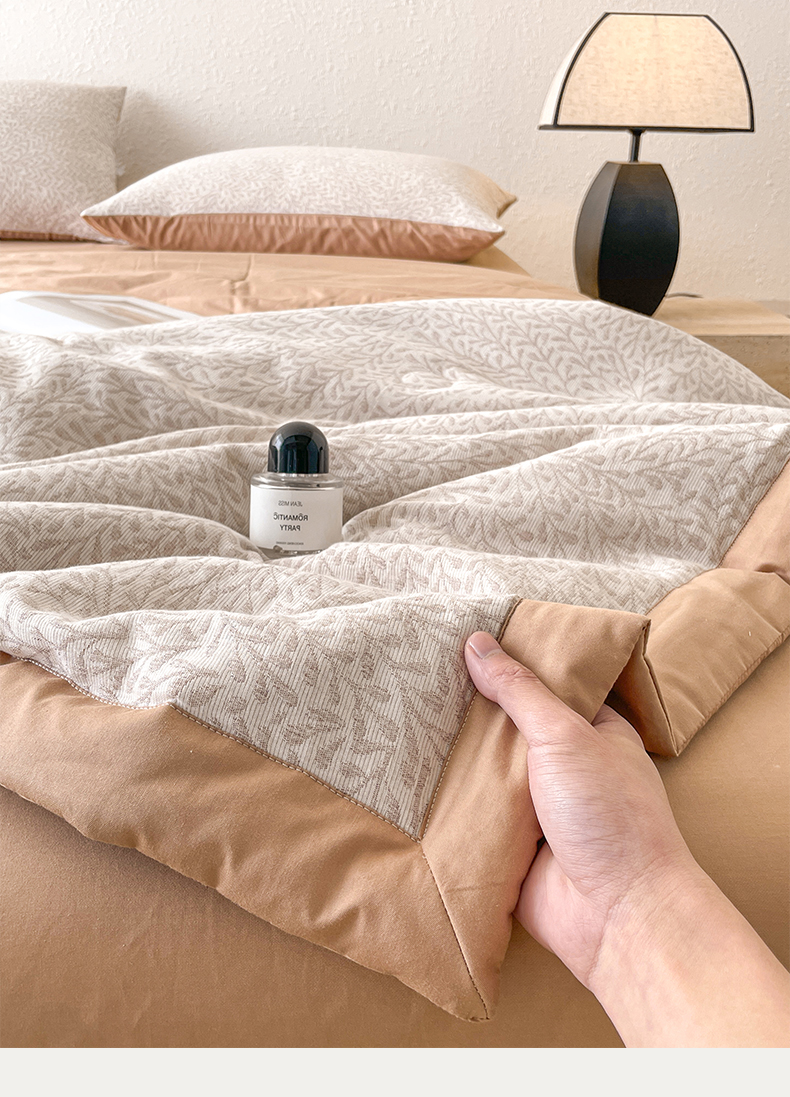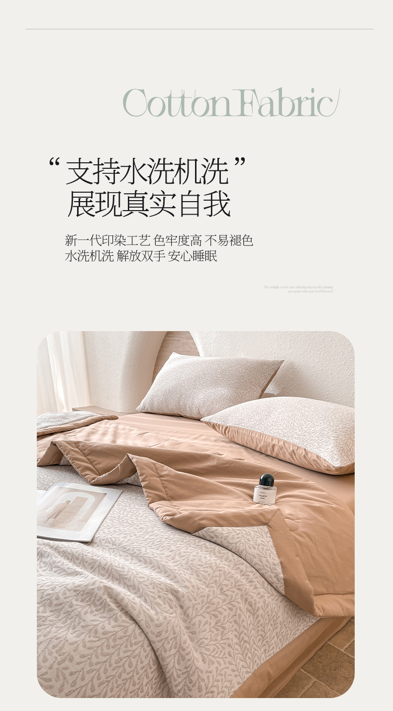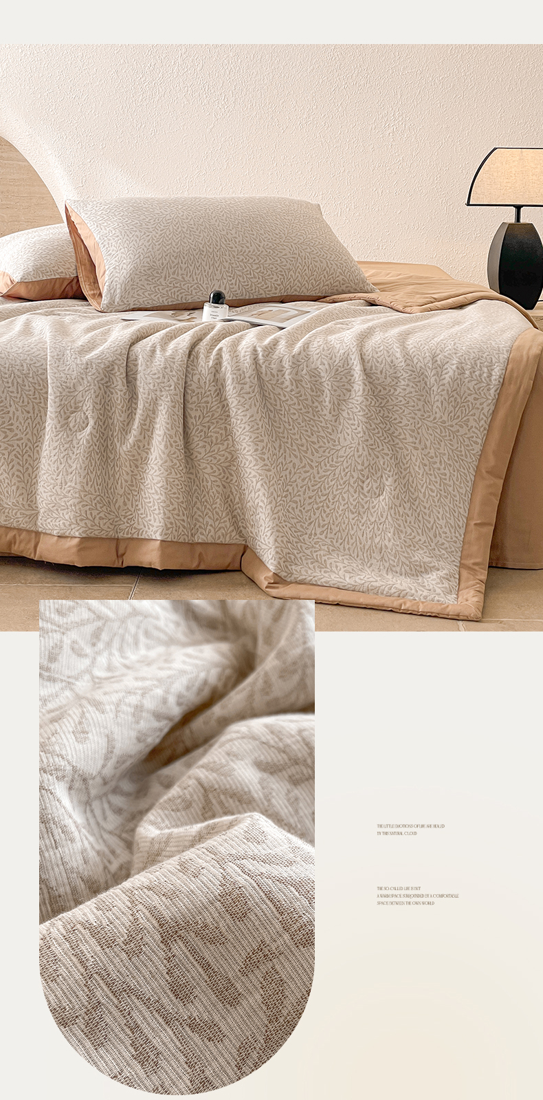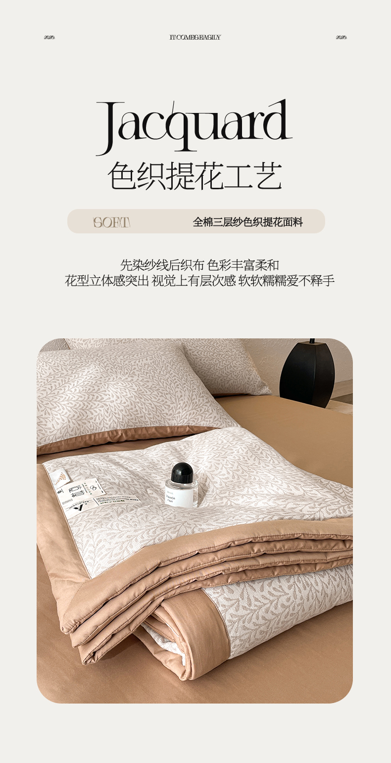 • 91家纺网 家纺一手货源 找家纺 一加一家纺2025新款A类全棉三层纱色织提花大豆夏被四件套 叶茂--咖