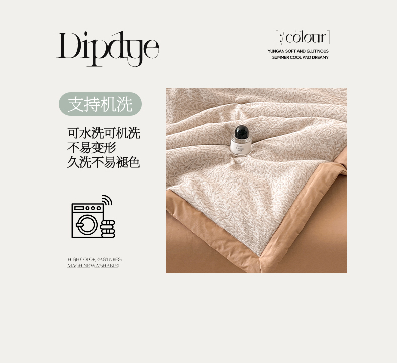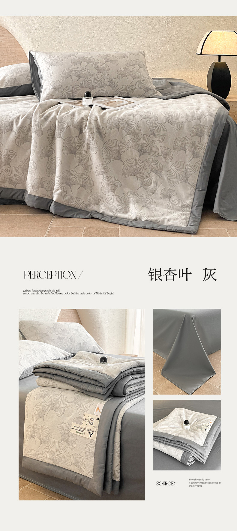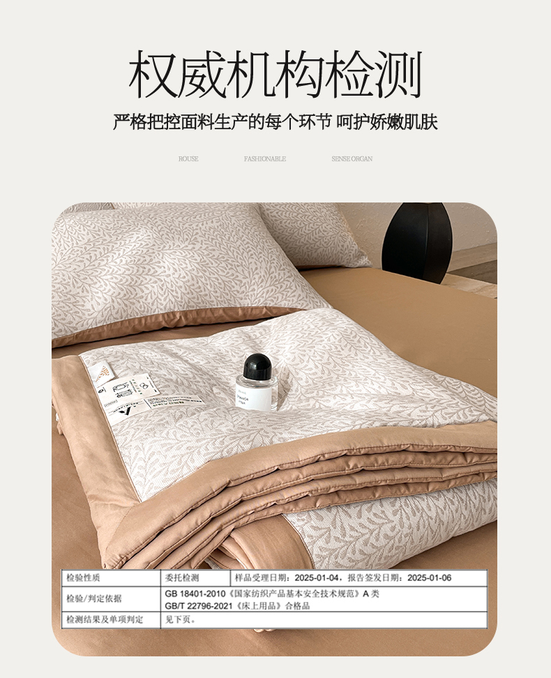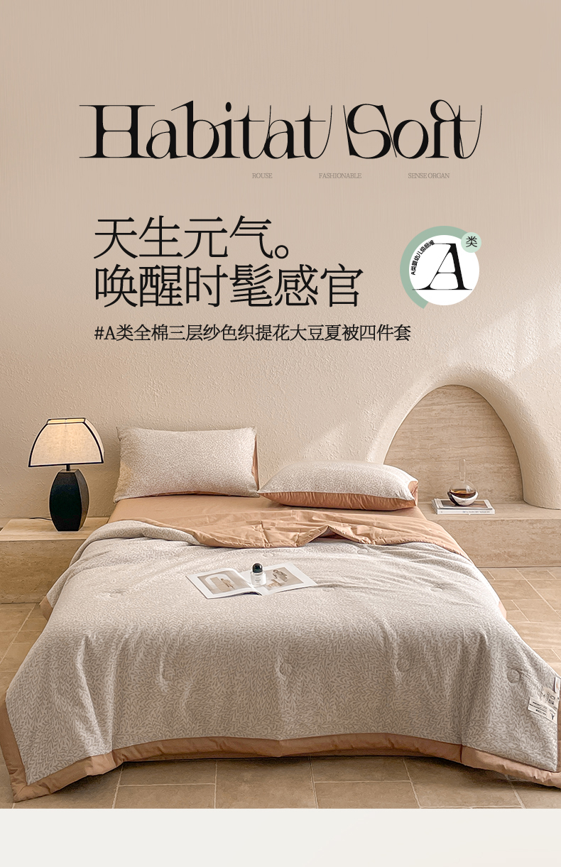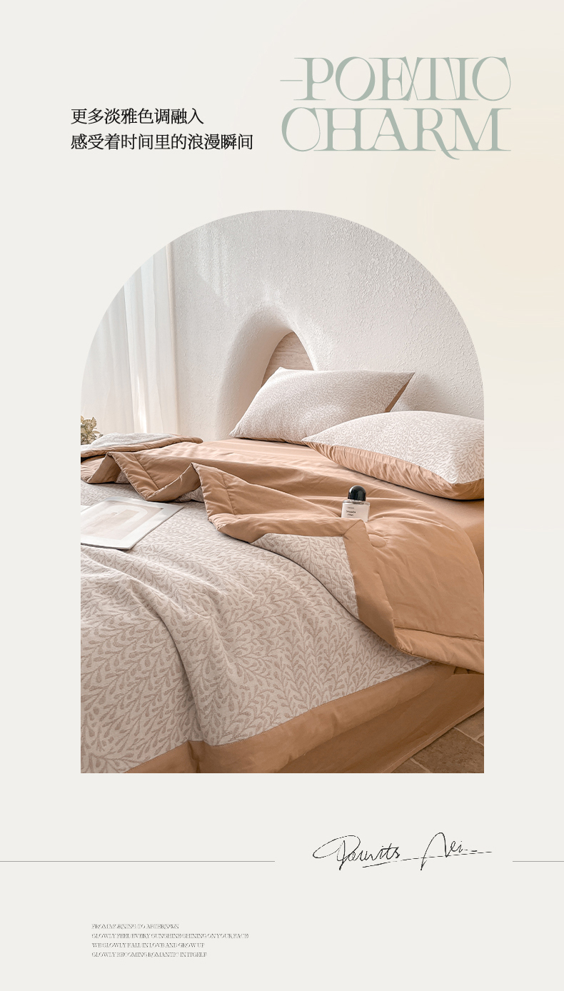 • 91家纺网 家纺一手货源 找家纺 一加一家纺2025新款A类全棉三层纱色织提花大豆夏被四件套 叶茂--咖