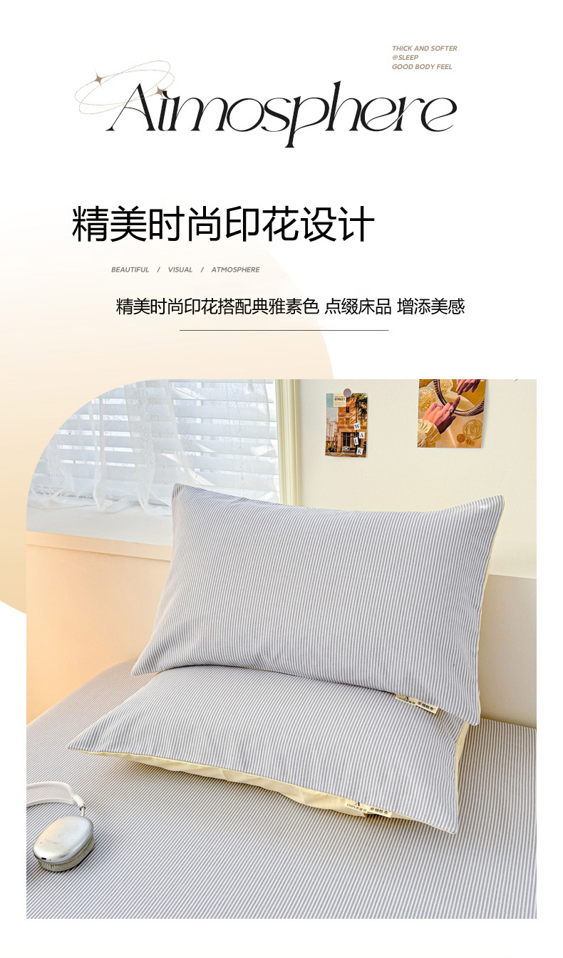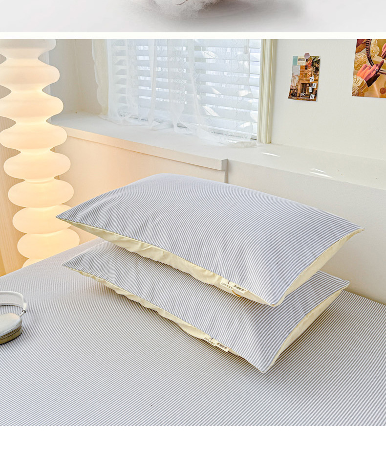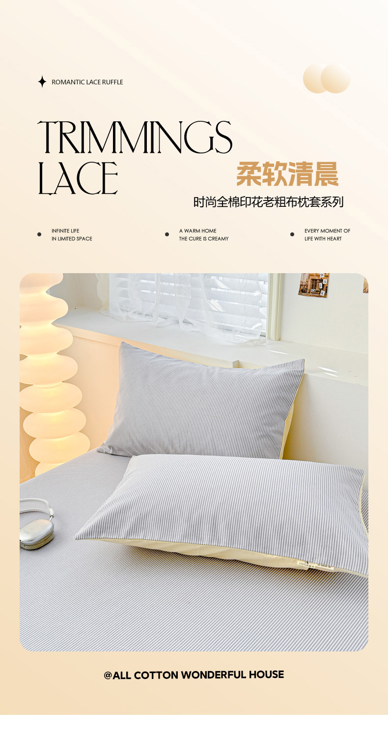 眠博士2025新款全棉老粗布枕套 老粗布枕套-细条灰