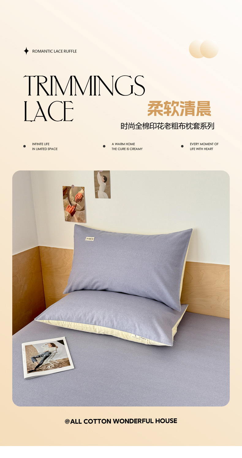 眠博士2025新款全棉老粗布枕套 老粗布枕套-月光中蓝
