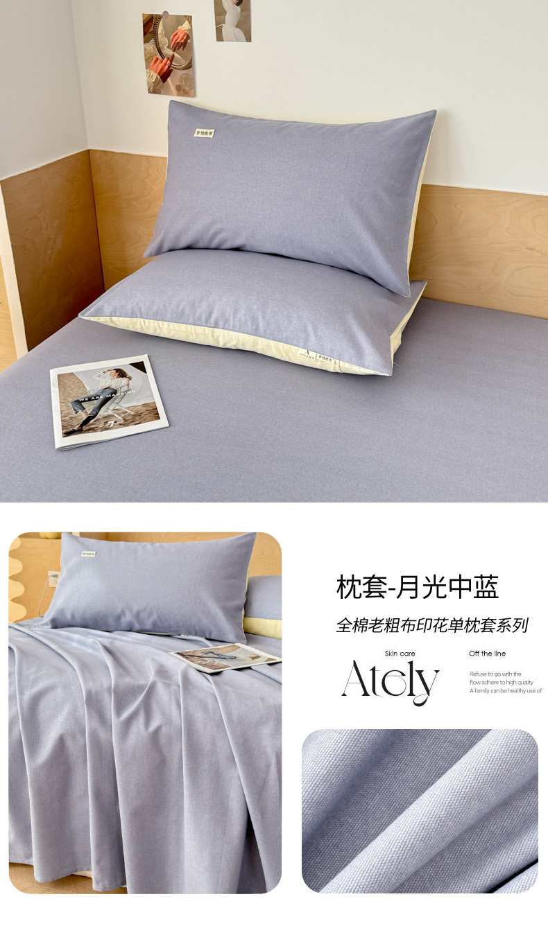 商品名称:眠博士2025新款全棉老粗布枕套 老粗布枕套-月光中蓝