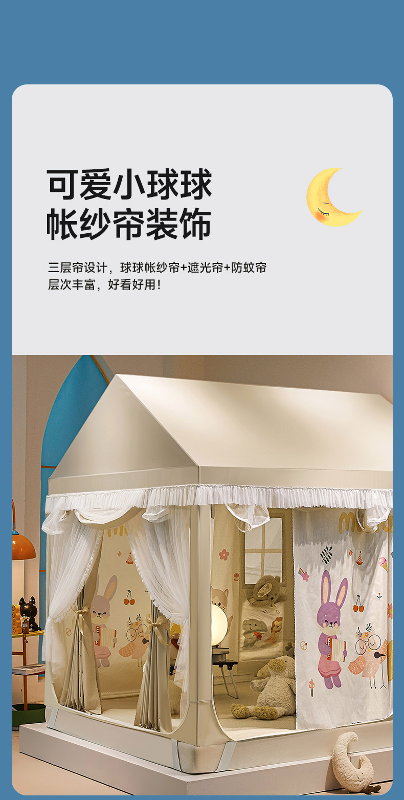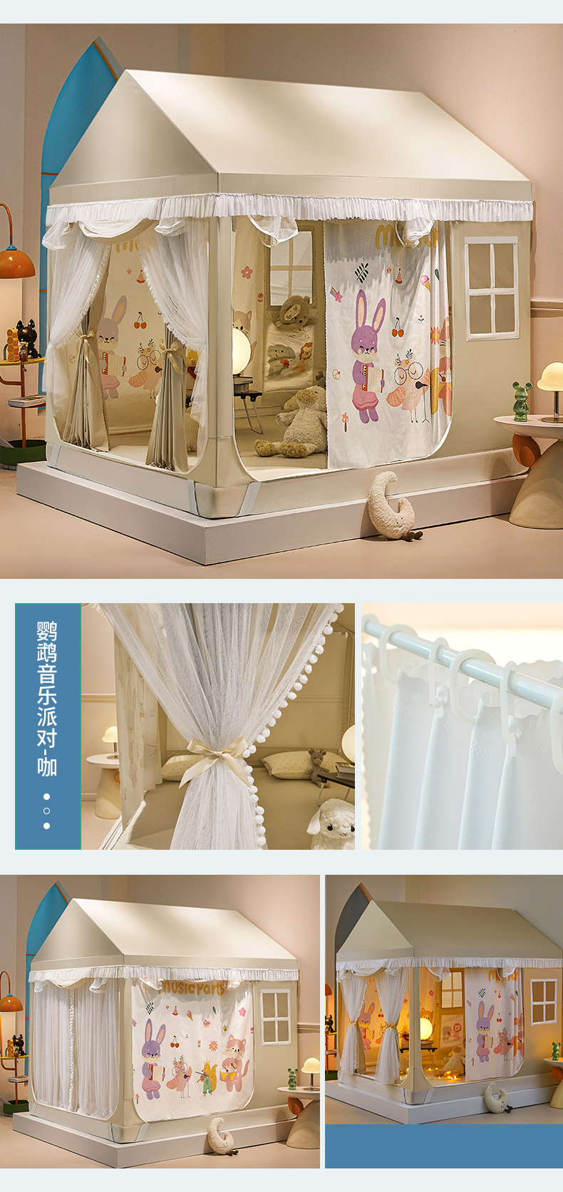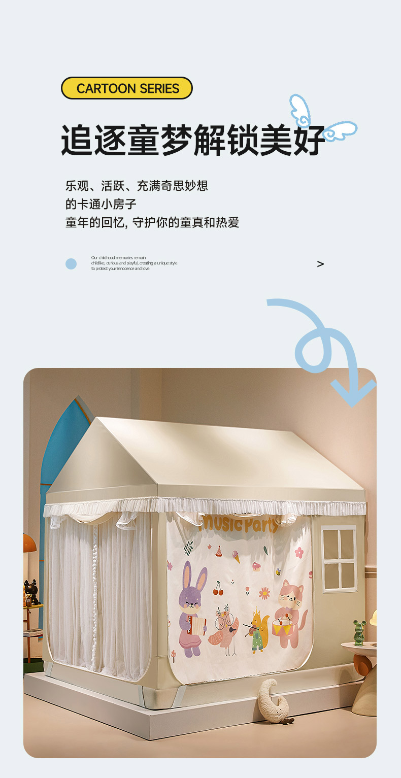 当前位置: 91家纺网 > 商品网购 > 床上用品 > 蚊帐 > 儿童蚊帐 > 富莱星2025新款卡通儿童小房子蚊帐系列 3鹦鹉音乐派对-咖
