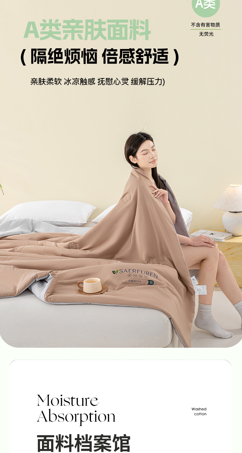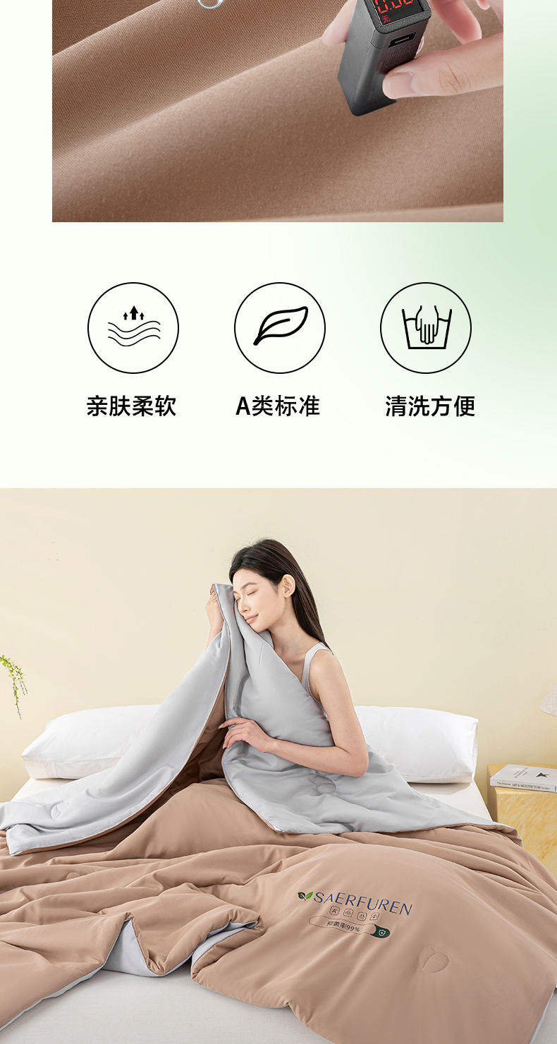 被子 > 夏被 > 憨豆2025新款升级双拼夏被空调被纯色夏凉被大豆纤维被子被芯直播跨境【含质检报告买家秀】小仙被-卡其灰