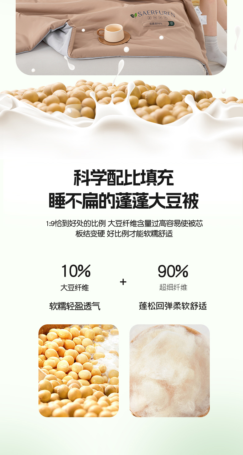 (总)憨豆 (买家秀)2025新款超柔云感立体大豆纤维被子母被冬被春秋被芯,海盐兰,米白色,香草灰,樱花粉