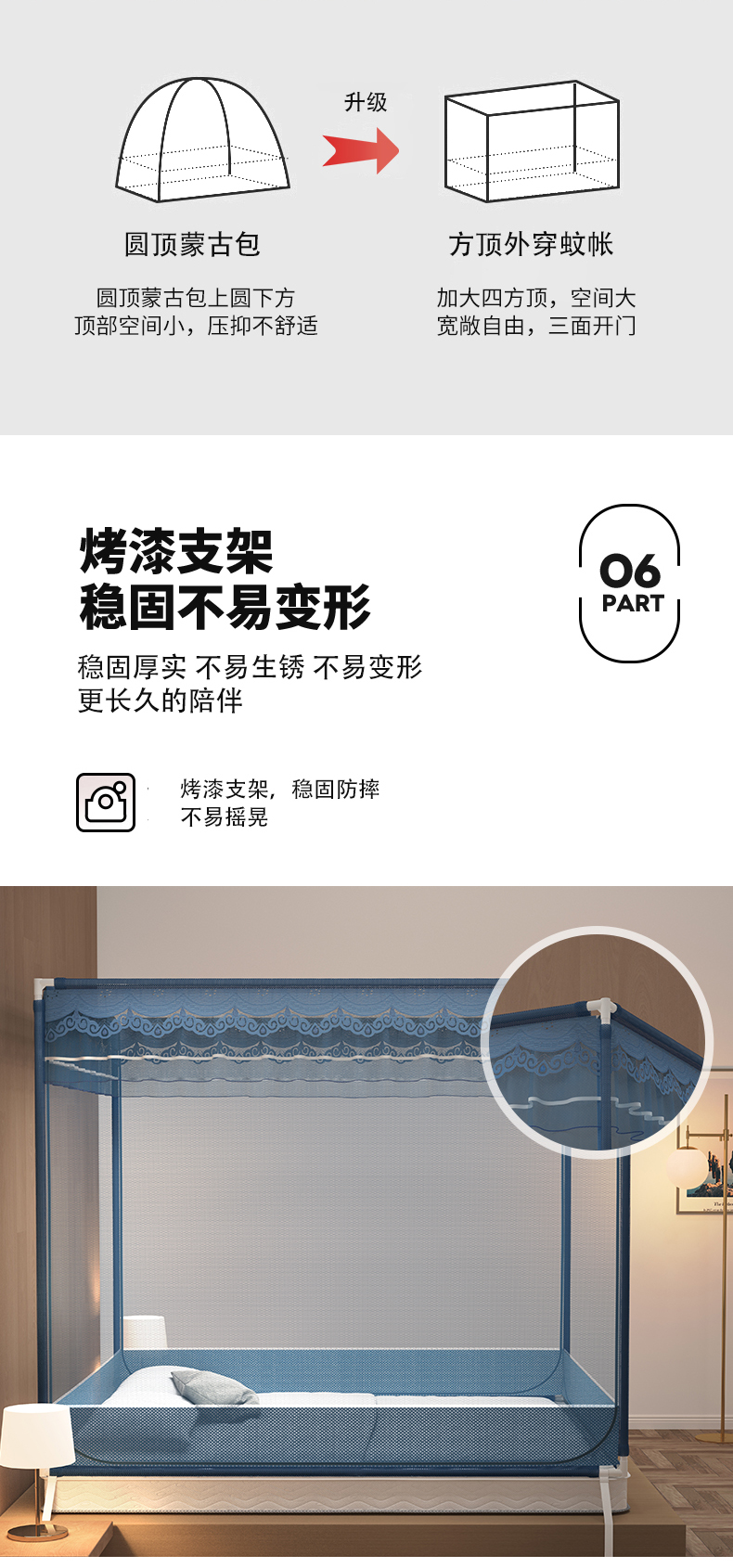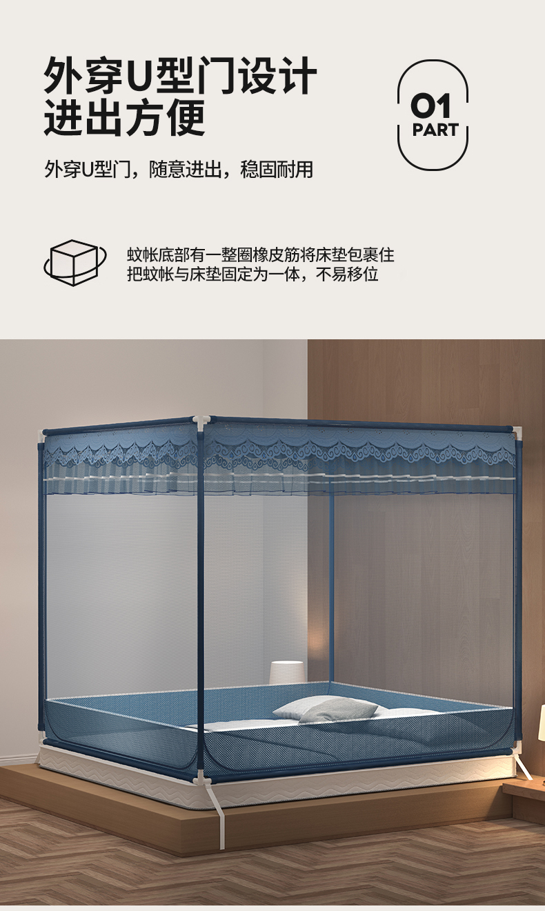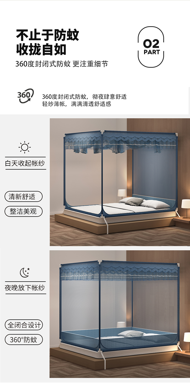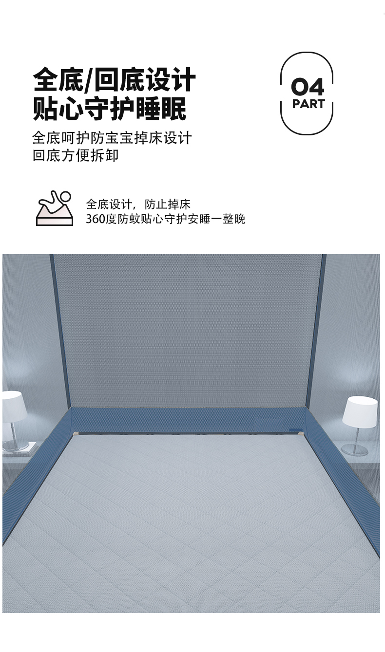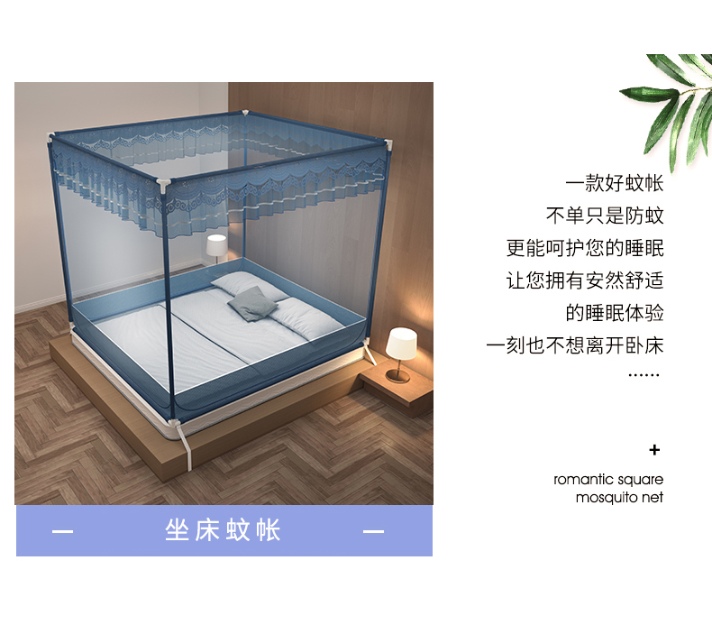 飞轮海蚊帐 2025防蚊全底回底外穿坐床蚊帐-Z55 T55 Z52 Z52黛蓝 全底