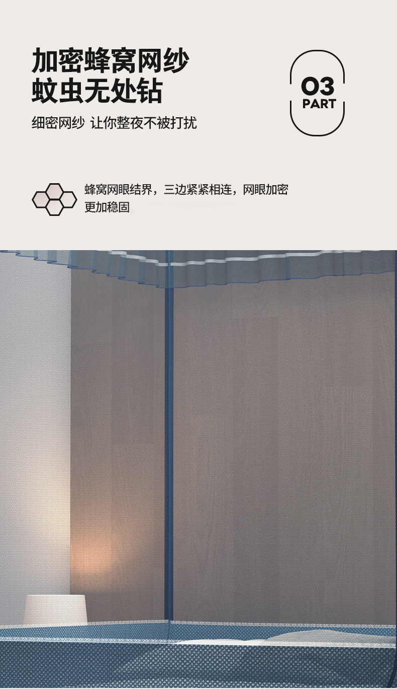 (总)飞轮海蚊帐 2023新款U型三开门遮光坐床蚊帐-Z-75,黛蓝,奶油黄,香槟