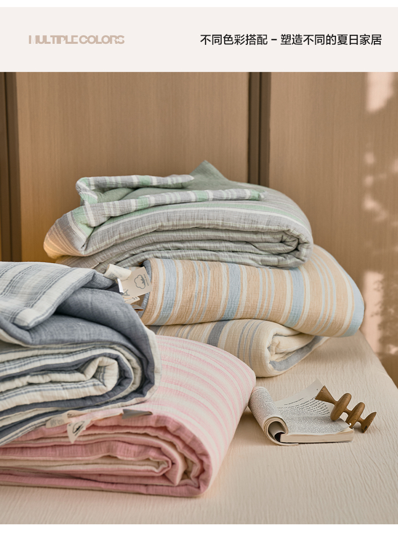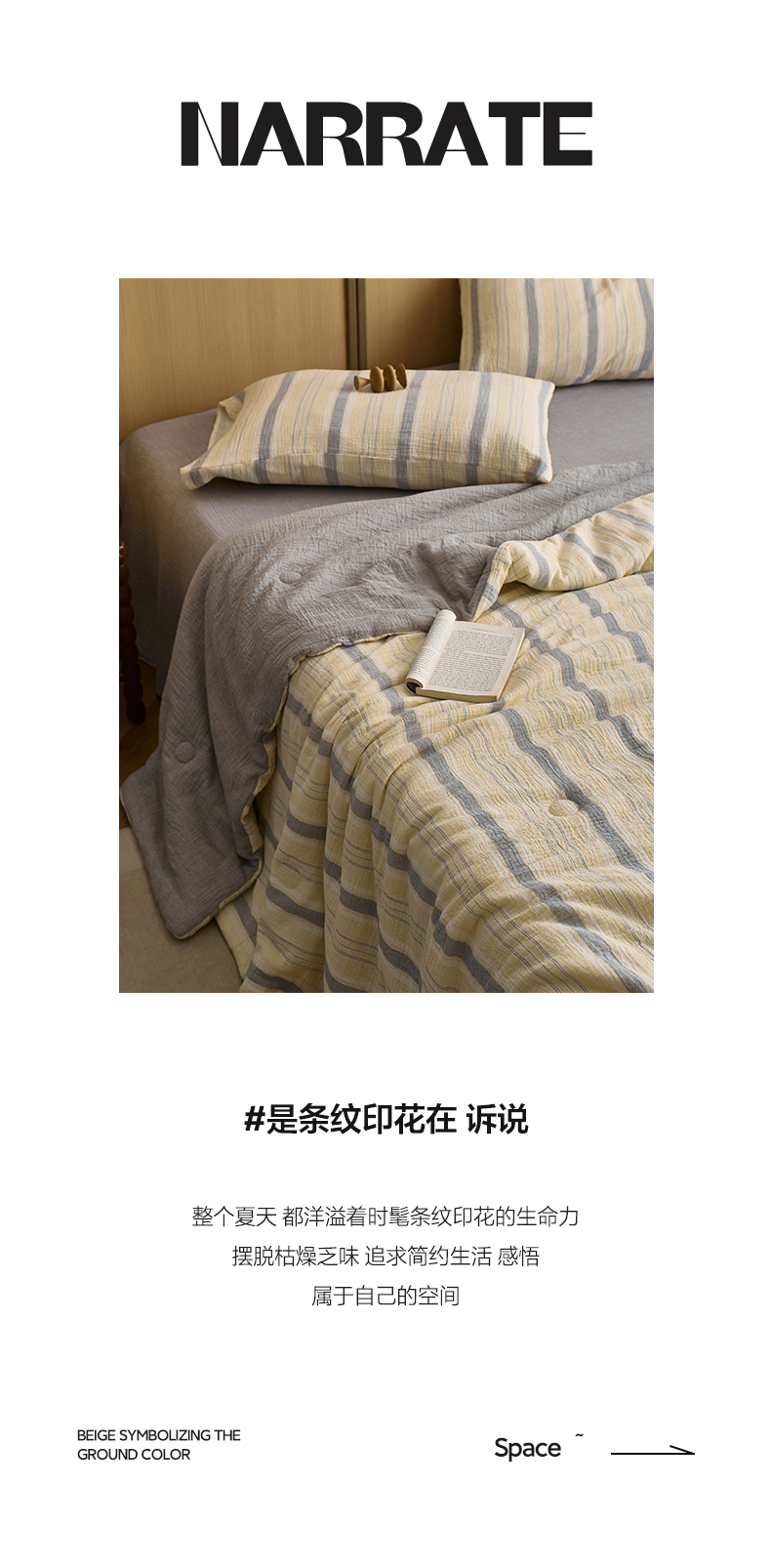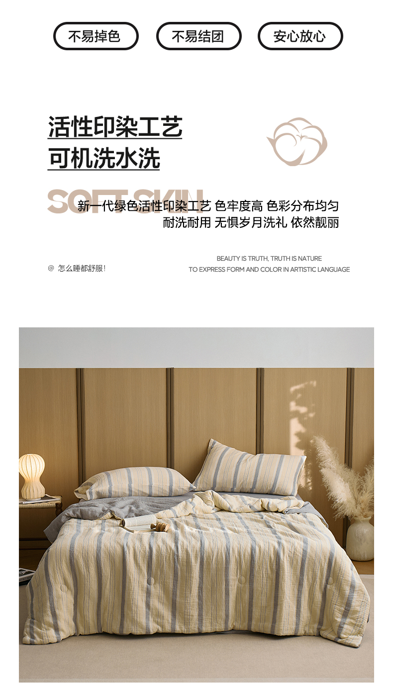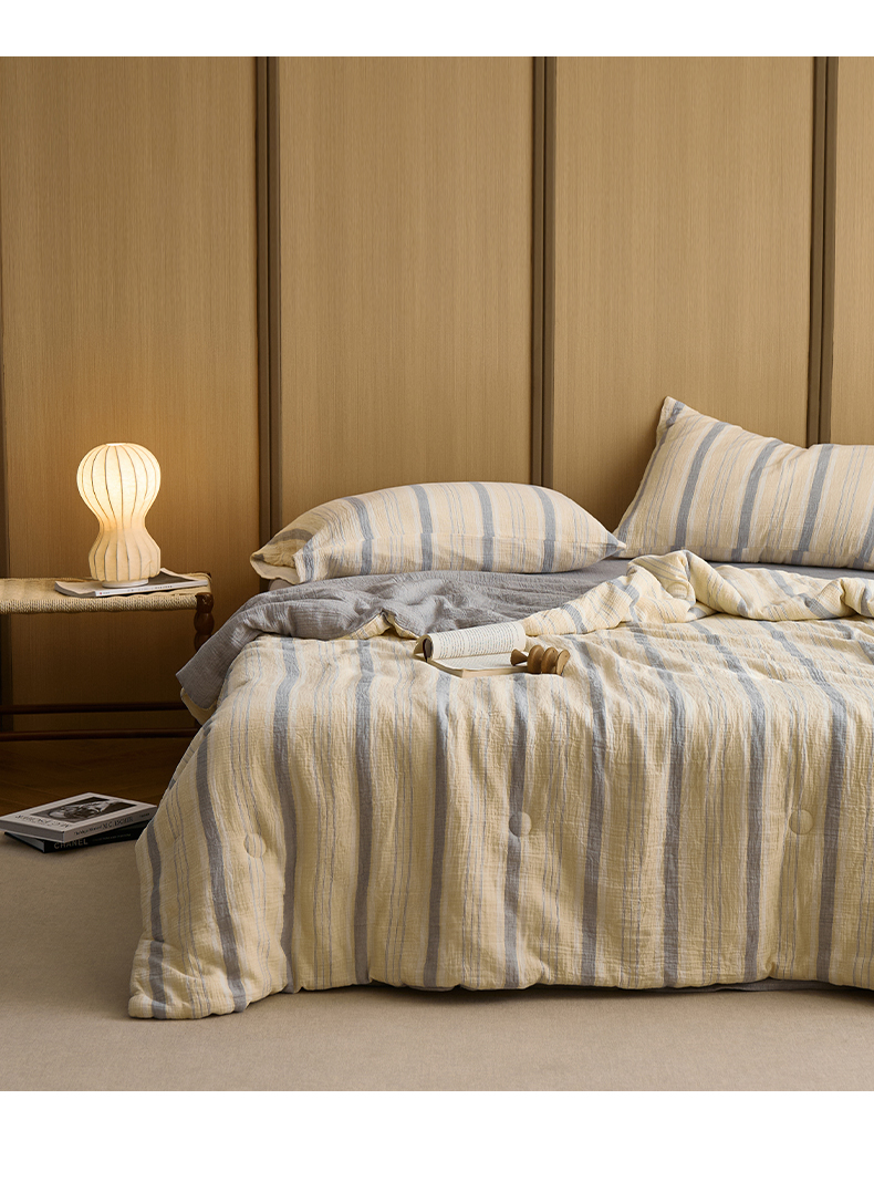 • 91家纺网 家纺一手货源 找家纺 一加一 2025新款A类母婴级水洗全棉无印双层皱皱纱牛奶蛋白夏被四件套 时予黄灰