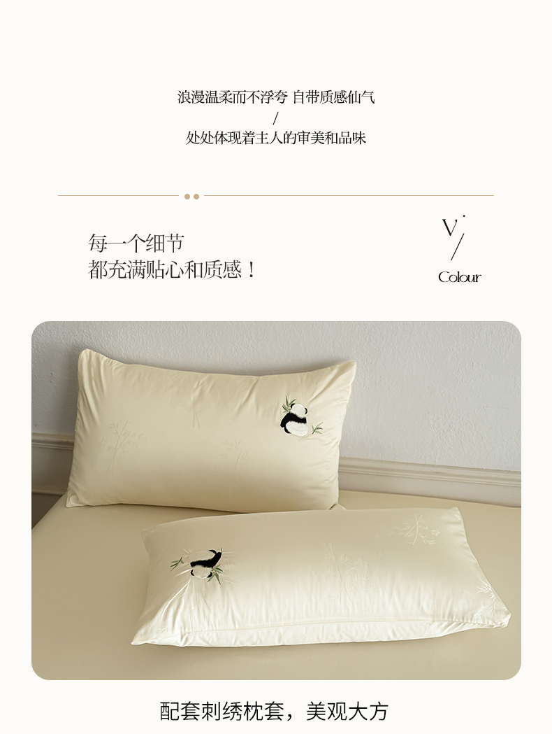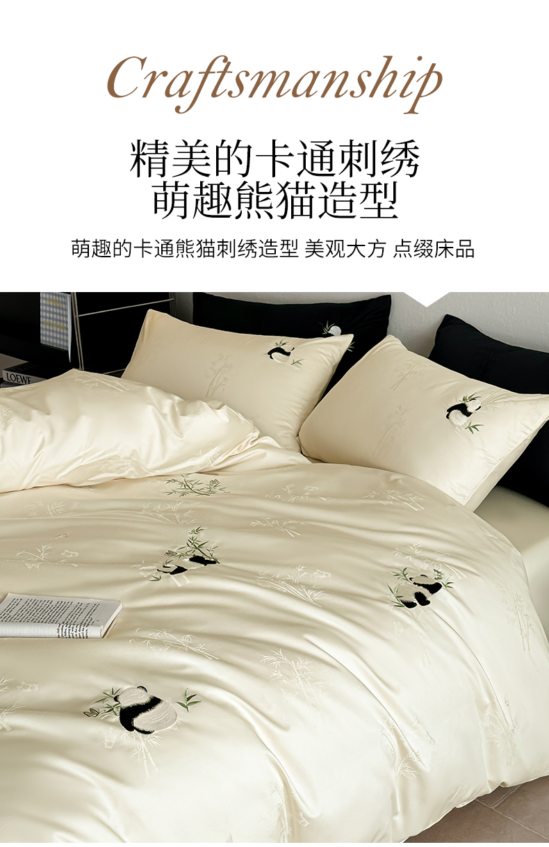 佰亿莱 2025新款100s长绒棉四件套 竹中熊猫-奶白