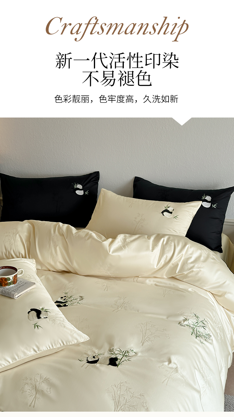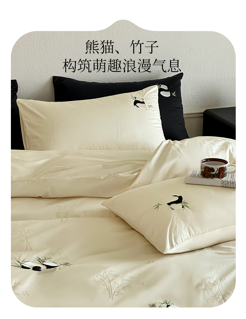 商品名称:佰亿莱 2025新款100s长绒棉四件套 竹中熊猫-奶白