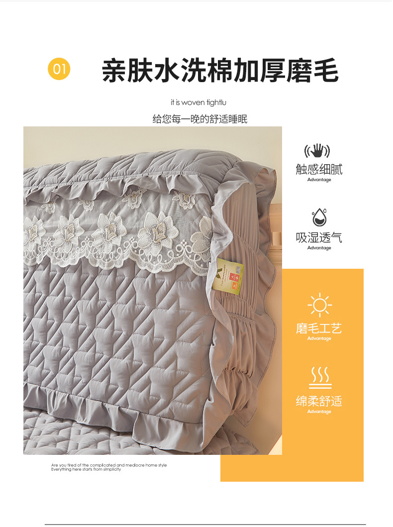 当前位置: 91家纺网 > 商品网购 > 床上用品 > 床罩 > 十个点家纺 2025新款千鸟格磨毛绗缝夹棉纯色花边床头罩 经典浅灰