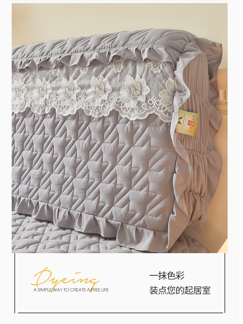 十个点家纺 2025新款千鸟格磨毛绗缝夹棉纯色花边床头罩 经典浅灰