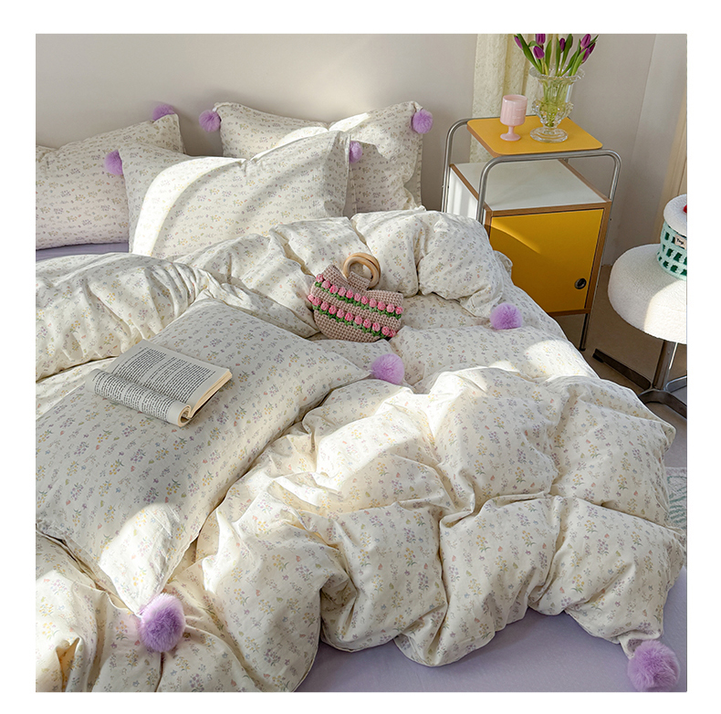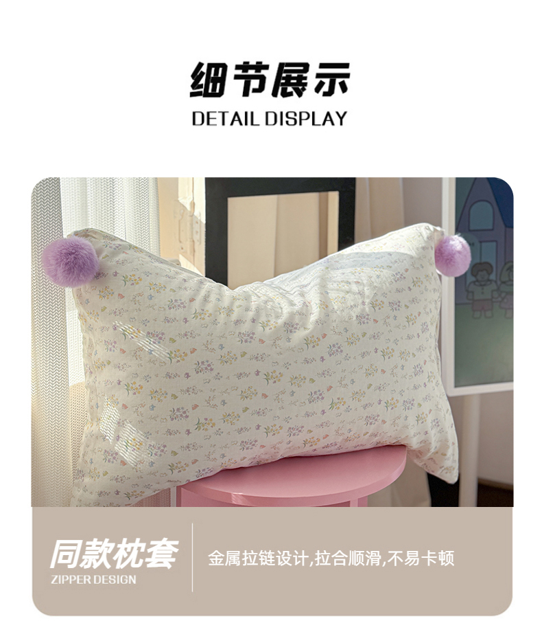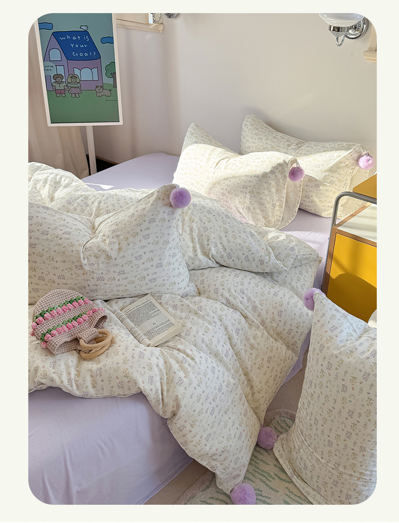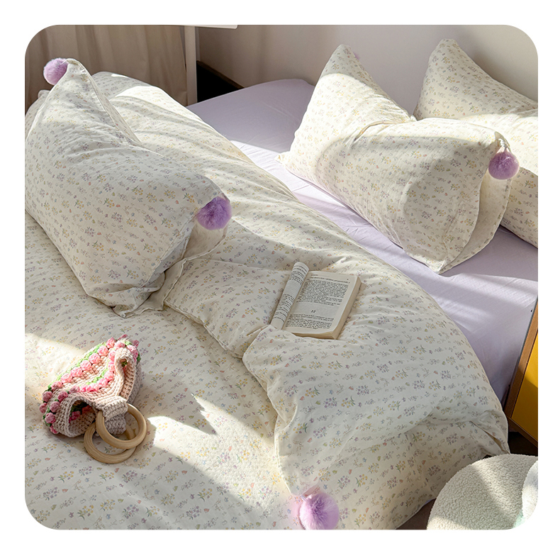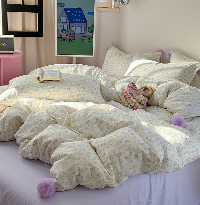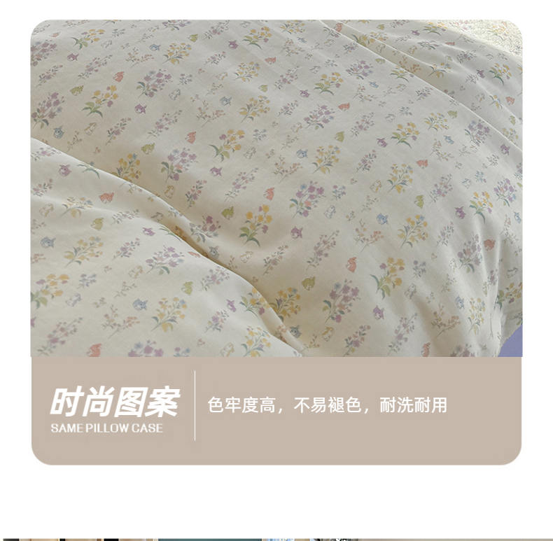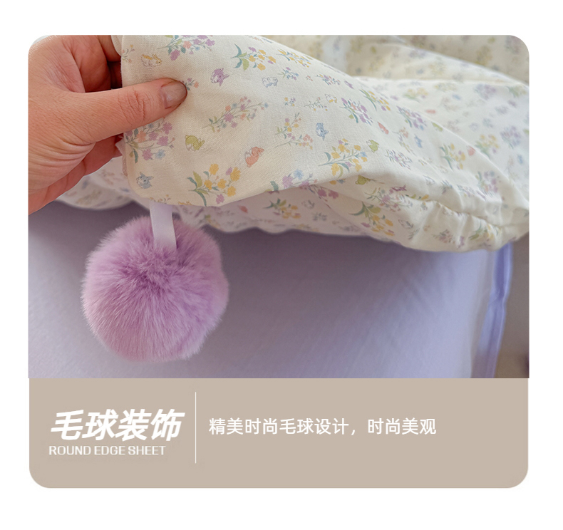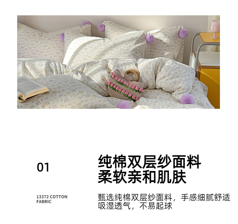 金爱家 2025新款亲肤舒适纯棉双层纱四件套 双层纱-紫碎花小兔