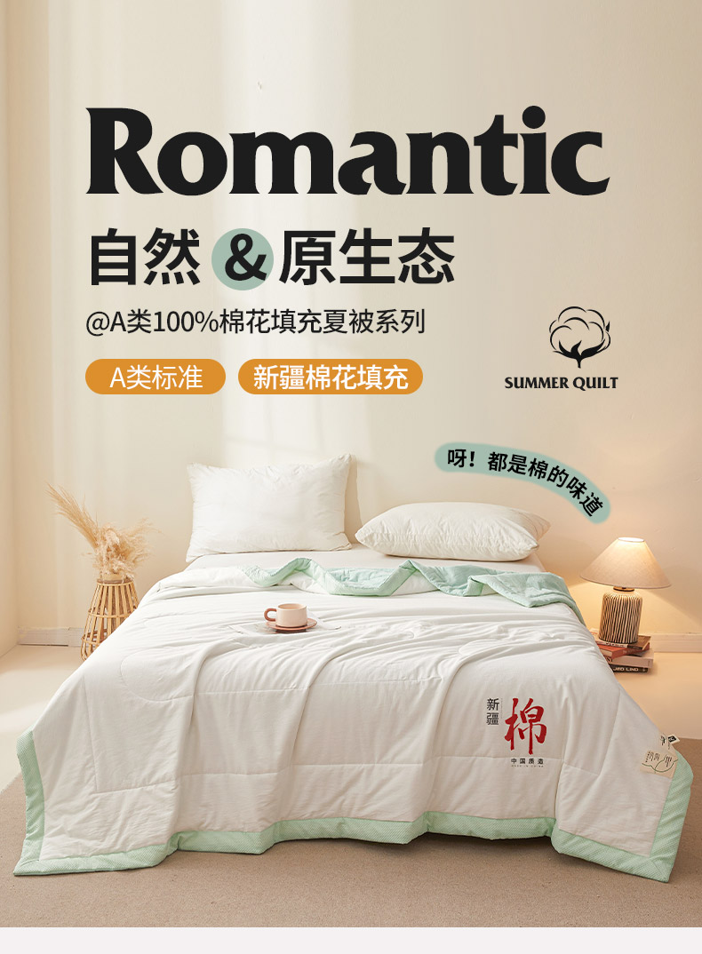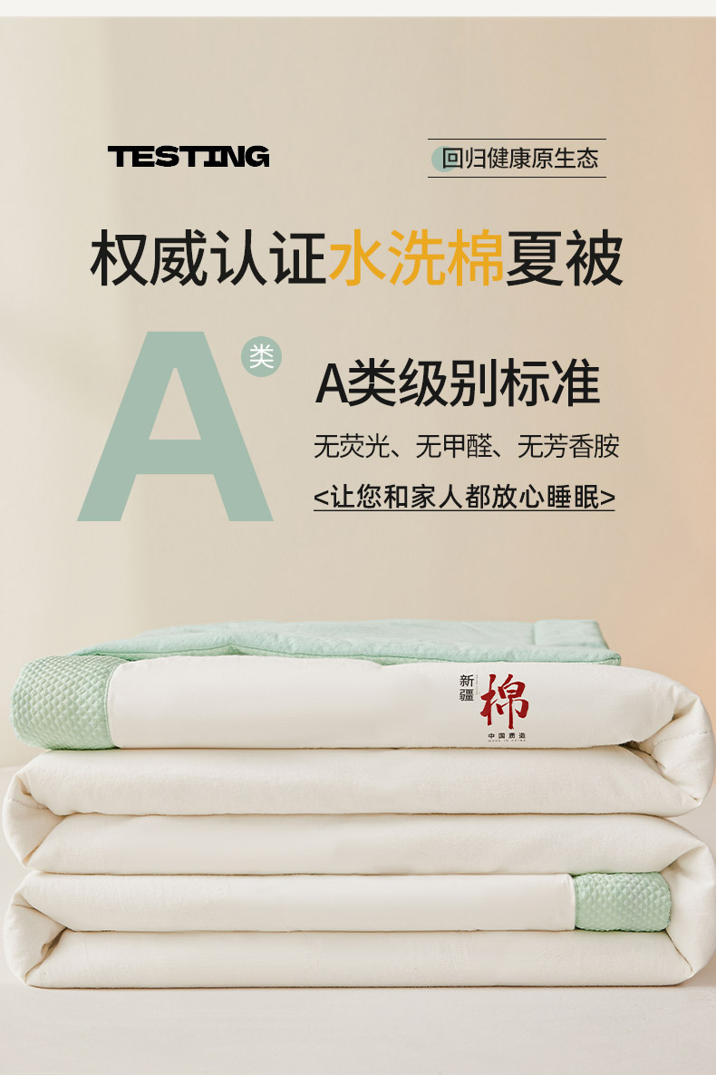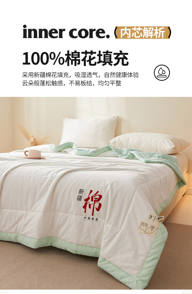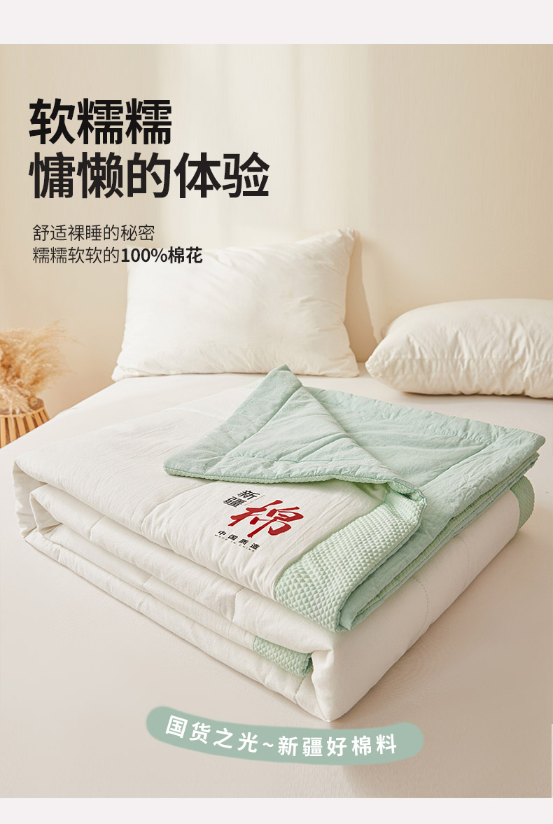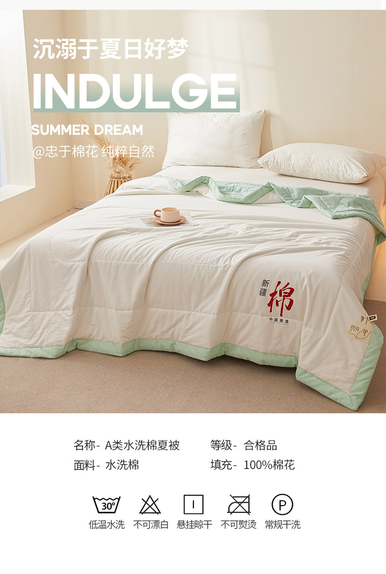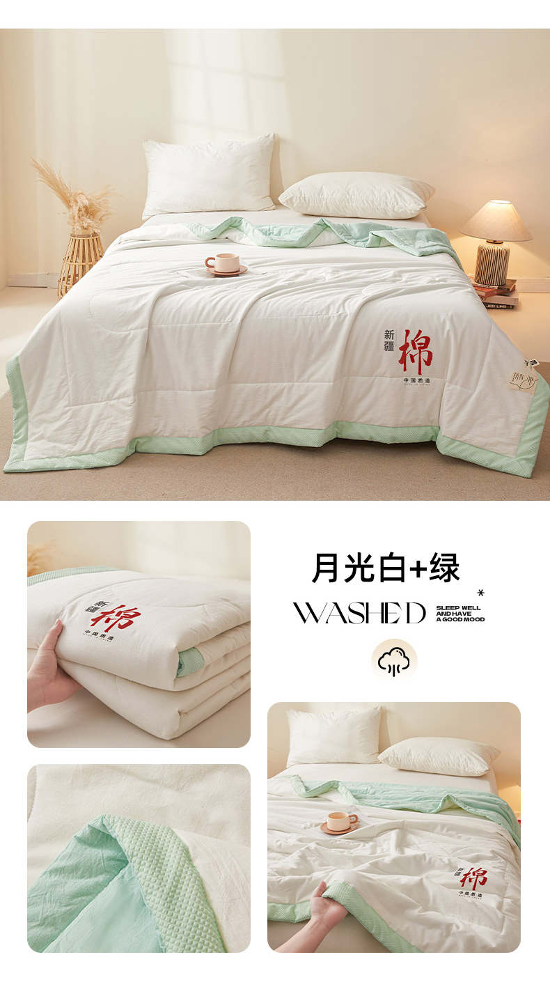 熙宴家纺 2025新款水洗棉100%新疆棉花夏被-月光白 月光白+绿