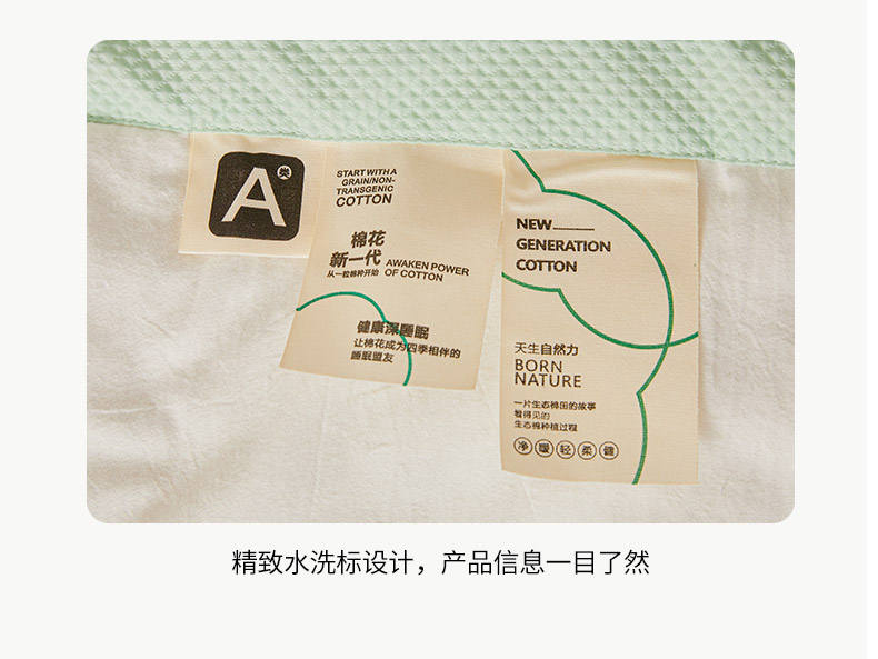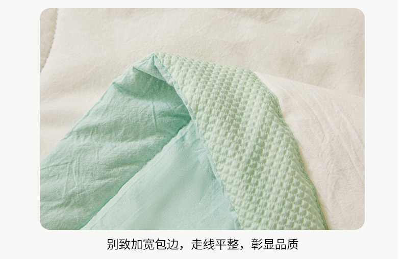 商品名称:熙宴家纺 2025新款水洗棉100%新疆棉花夏被-月光白 月光白+绿