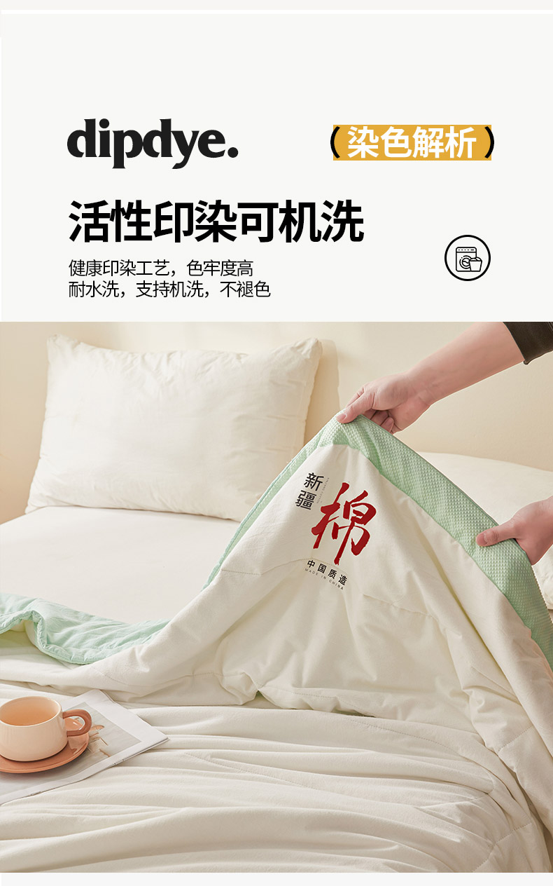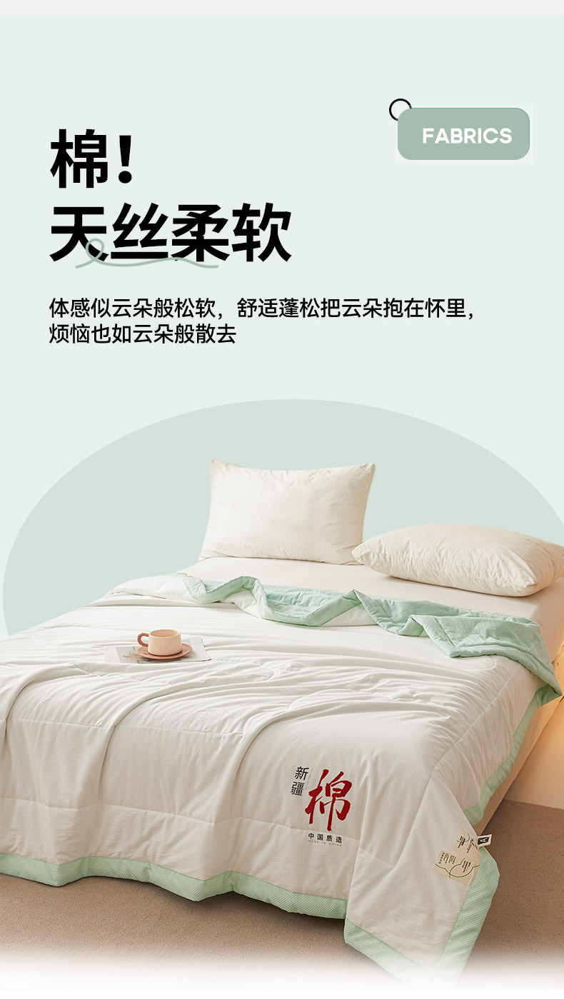 (总)熙宴家纺 2025新款水洗棉嵌绳款100%新疆棉花被,豆绿,粉玉,石灰,雾蓝