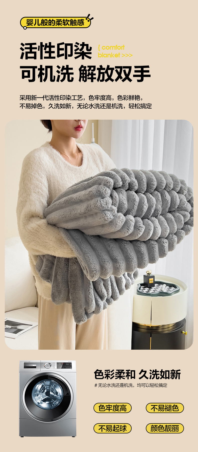 一帆毯业 (总)跨境外贸2025新款仿兔毛宽抽条牛奶绒盖毯,抽条白色,抽条粉,抽条卡其,抽条浅灰,抽条深灰,粉,绿色,紫色,果绿,黑色