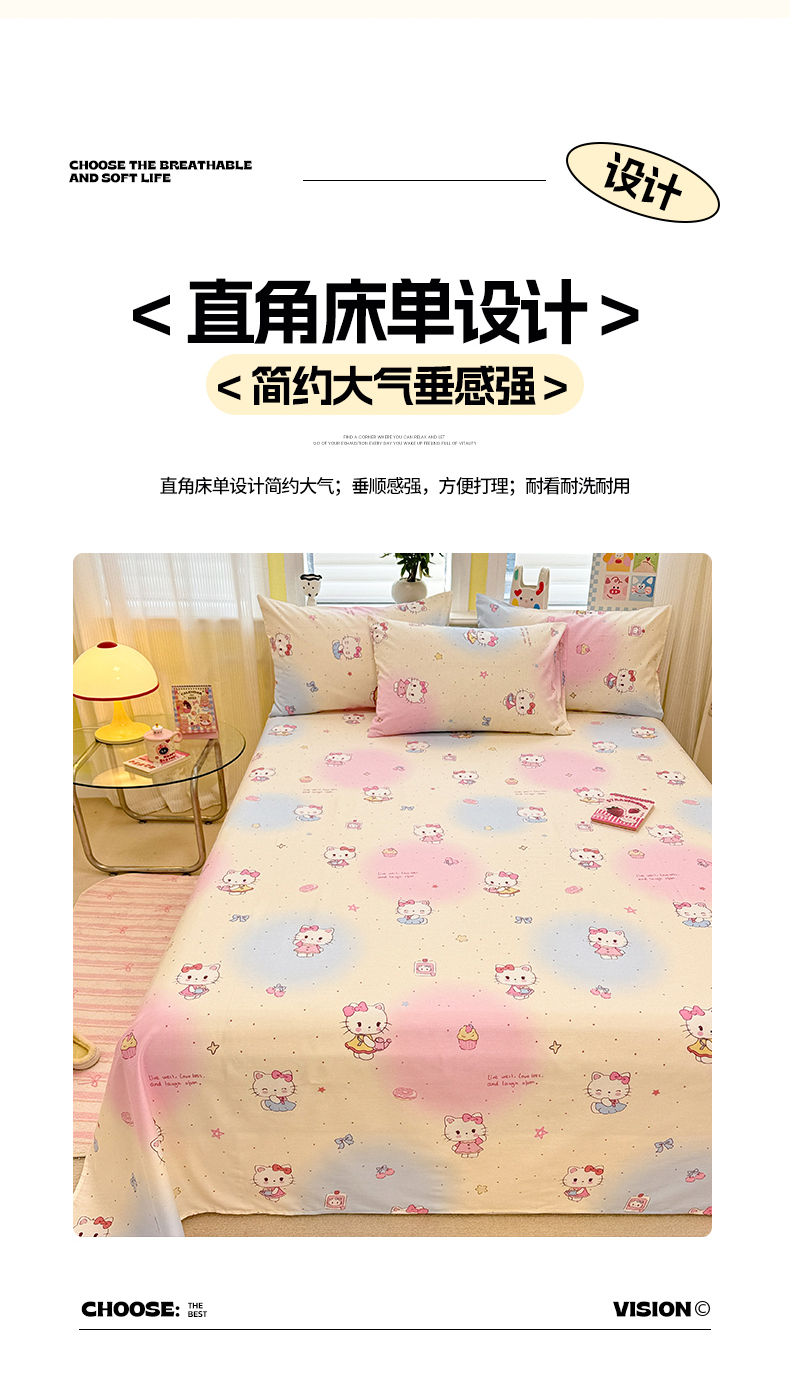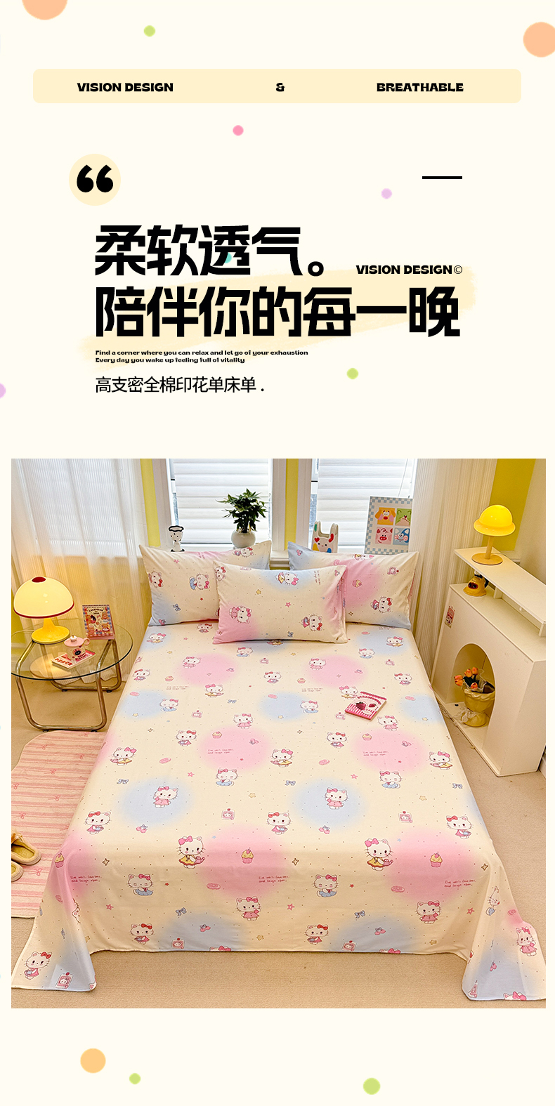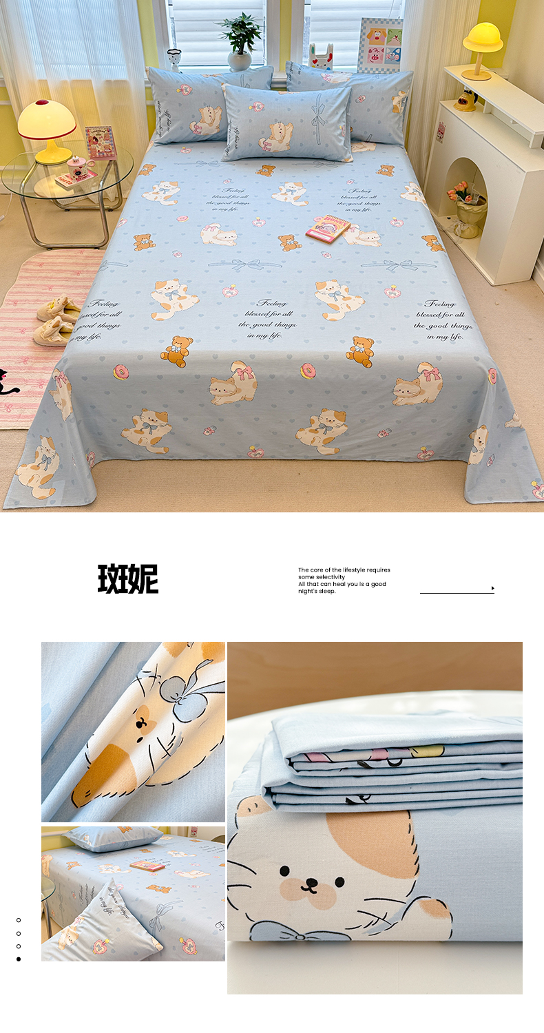 吉象家纺 2025新款高支密全棉印花单品系列-单床单 甜喵