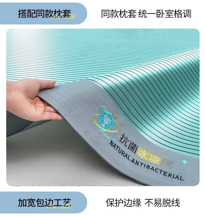 • 91家纺网 家纺一手货源 找家纺 航途席业 2025新款凉席抗菌刺绣可水洗碳光冰丝席包边无纺布冰丝席 素夏 薄荷绿-床席款