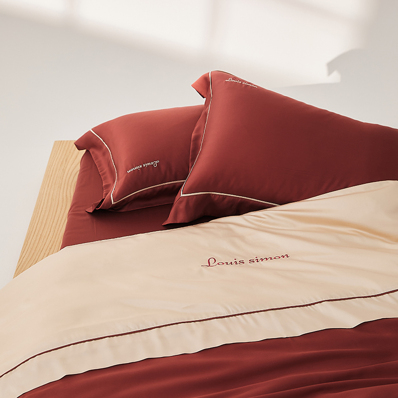 商品名称:涞澳家纺 2025新款天丝横头绣花款四件套-月影系列 月影-酒红