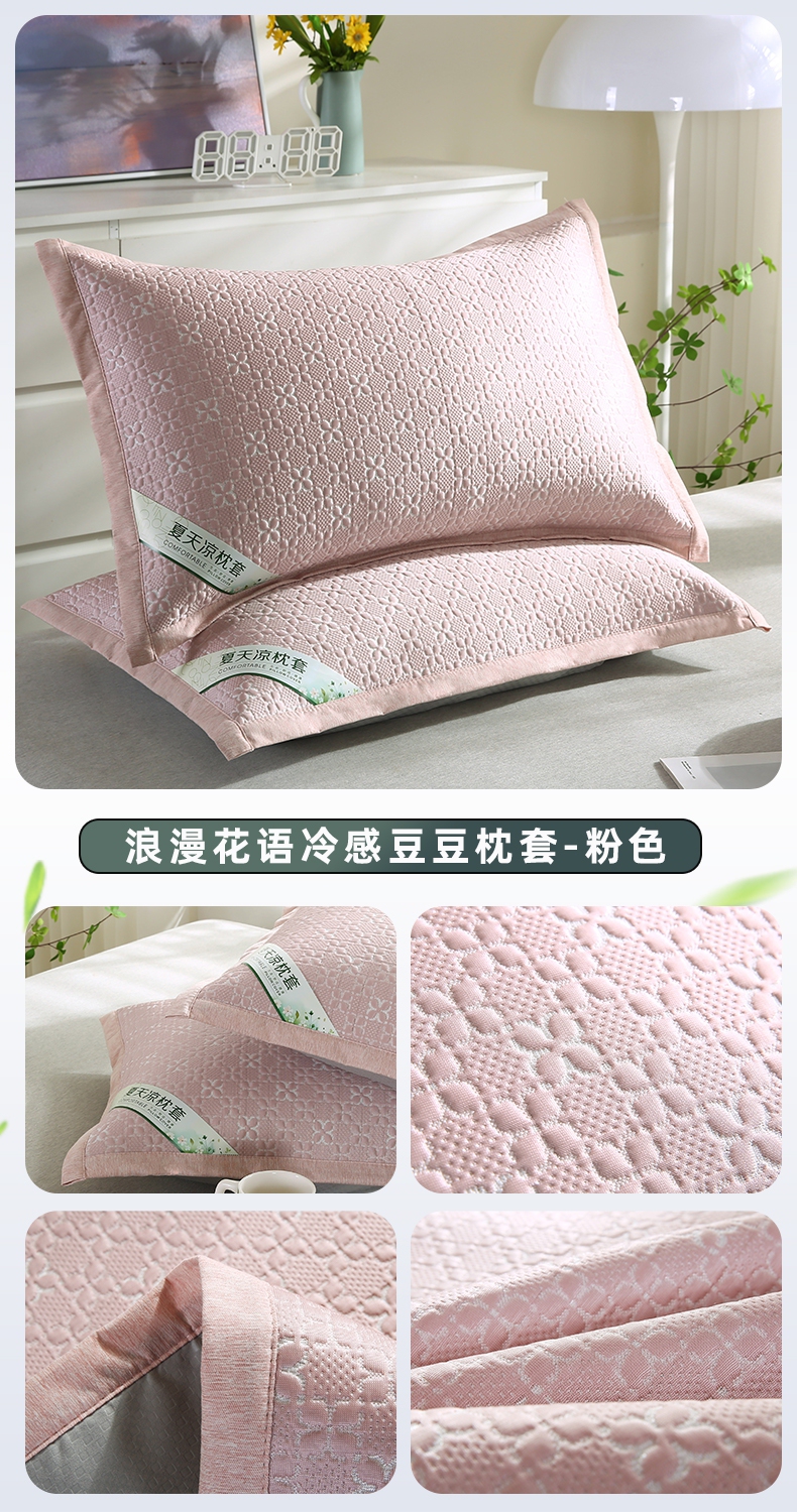商品名称:小牛席业 2025新款浪漫花语冷感豆豆枕套凉枕套夏天枕套冰丝枕套竹枕套藤枕套冰藤枕套 浪漫花语冷感豆豆枕套-蓝色