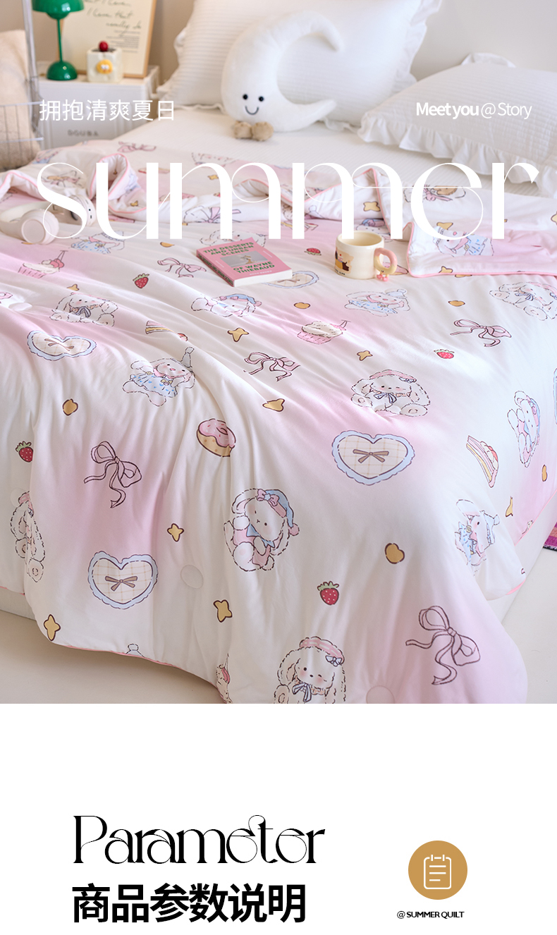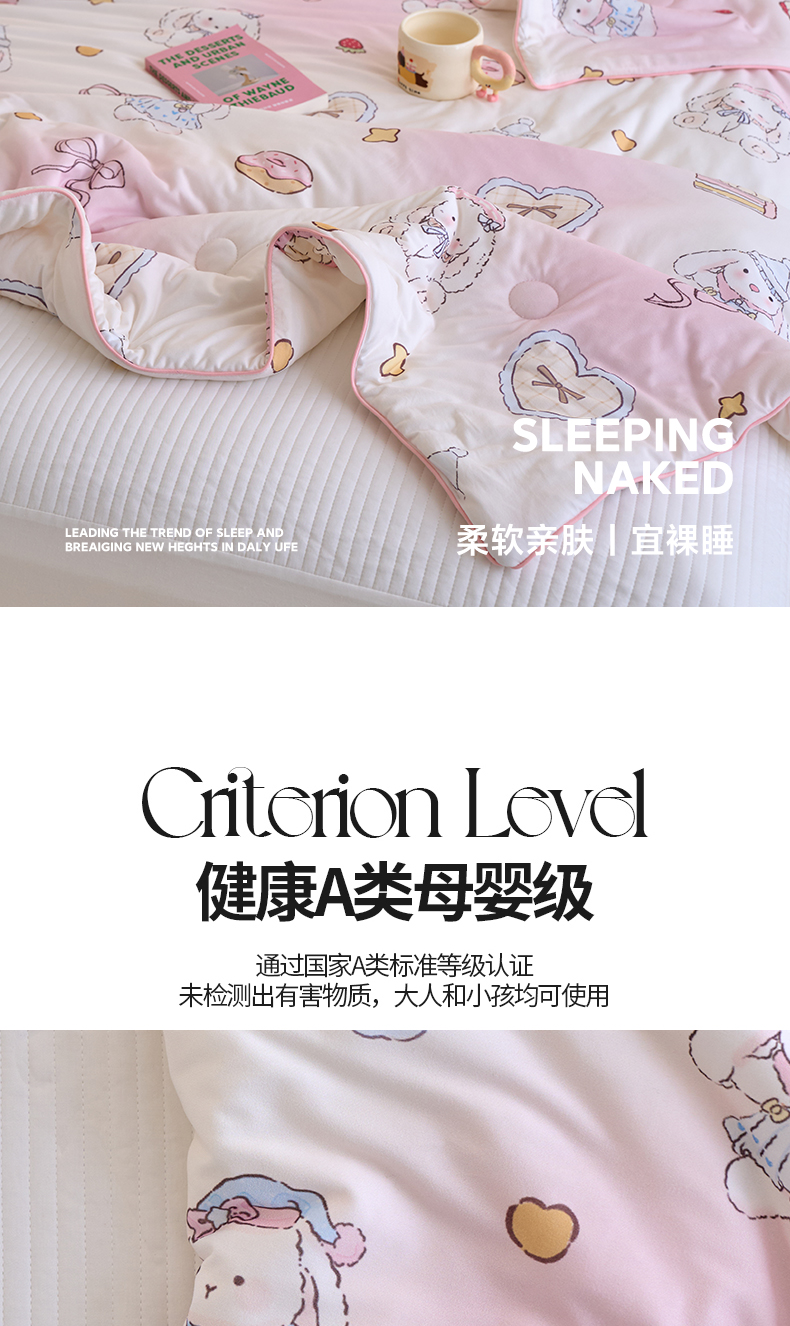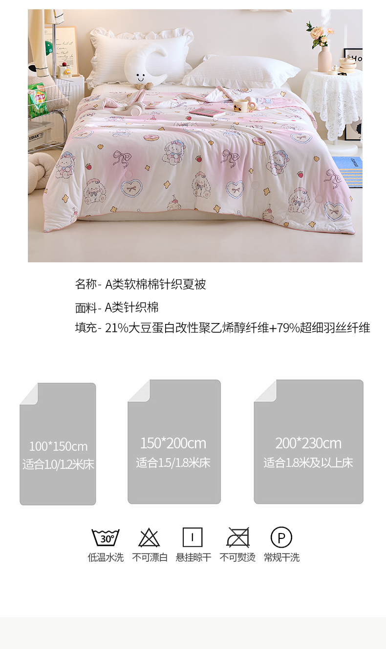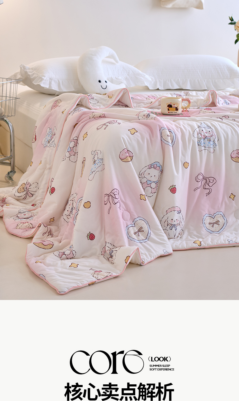 商品名称:维洋家纺 2025升级21%大豆新款A类牛奶丝针织夏被(四周踩棉)软糯凉感夏被空调被 甜兔兔