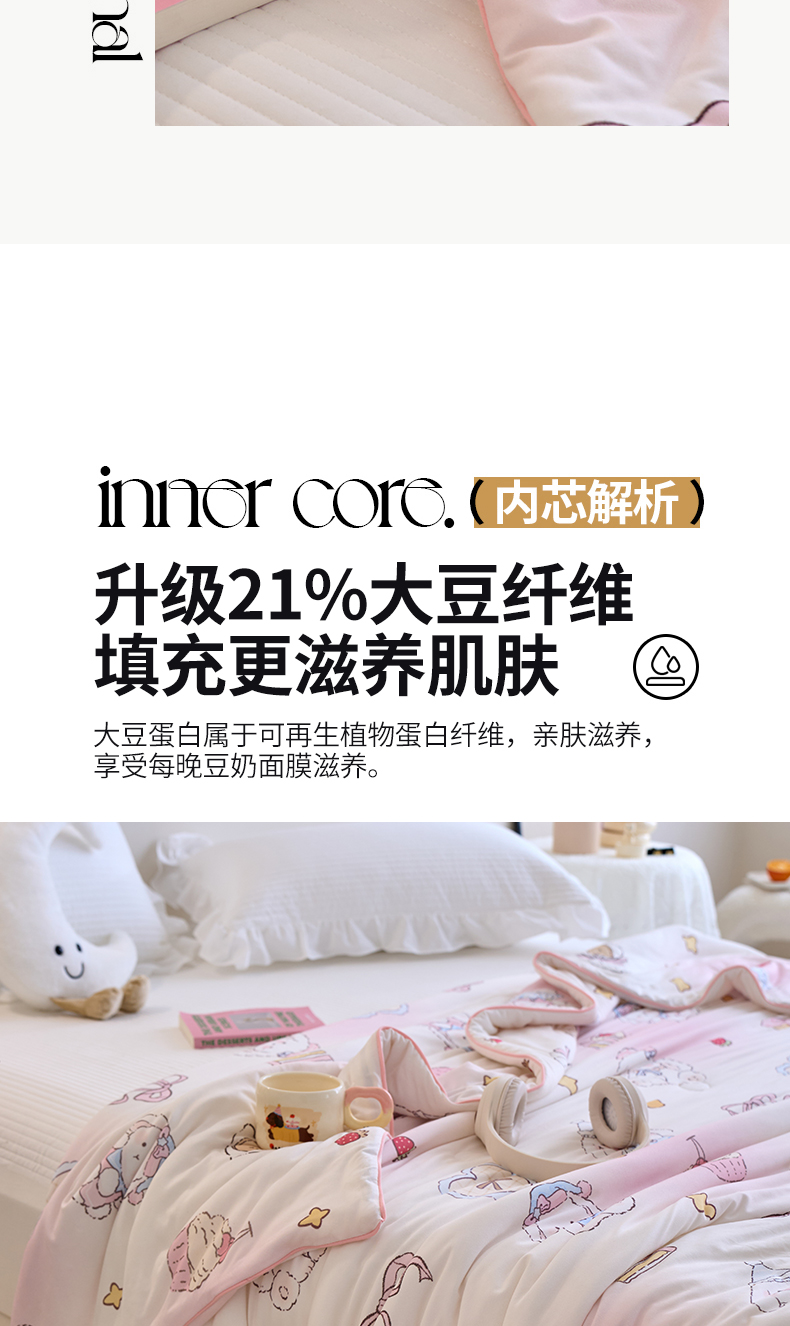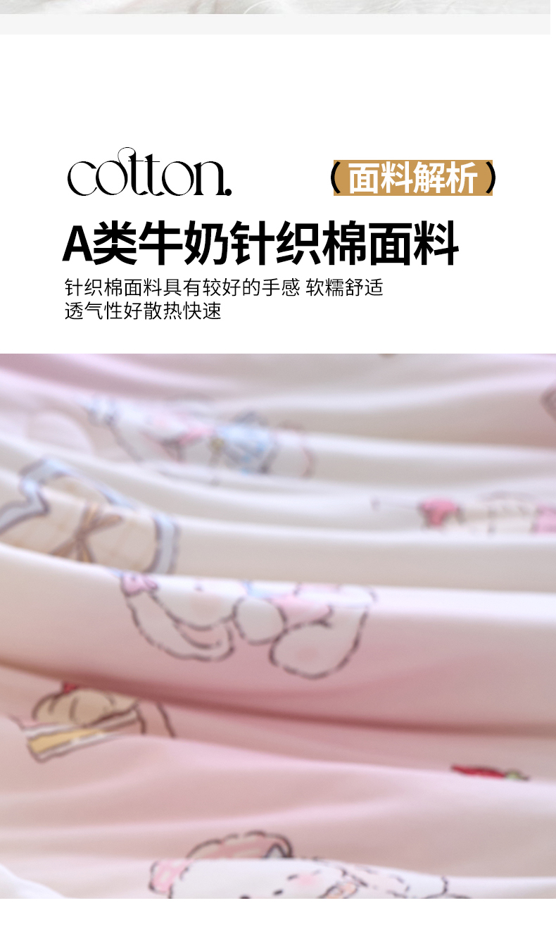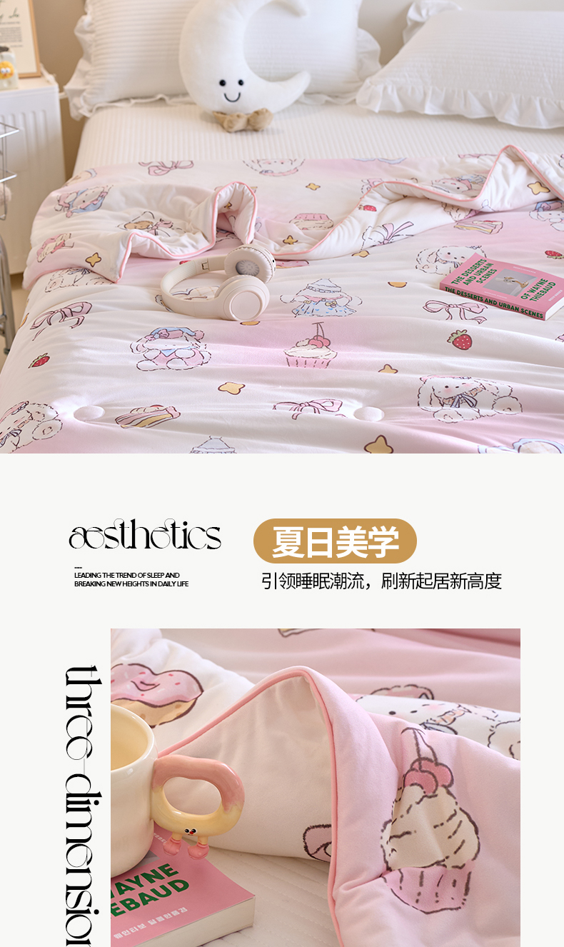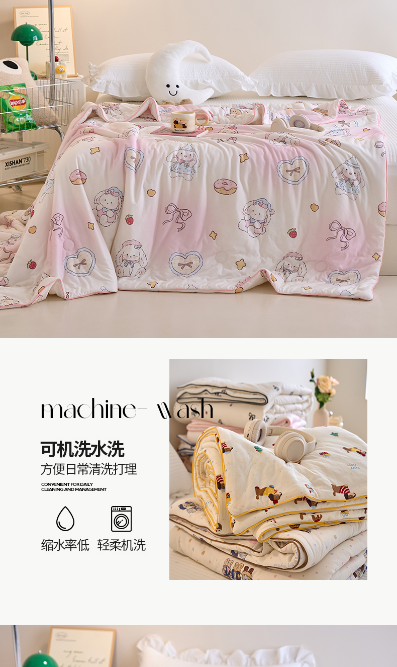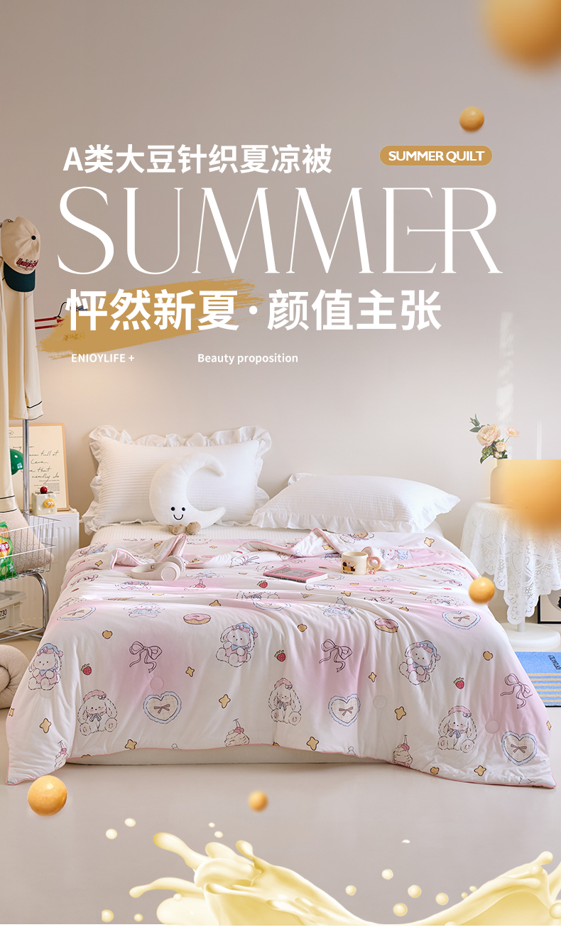 商品名称:维洋家纺 2025升级21%大豆新款A类牛奶丝针织夏被(四周踩棉)软糯凉感夏被空调被 甜兔兔
