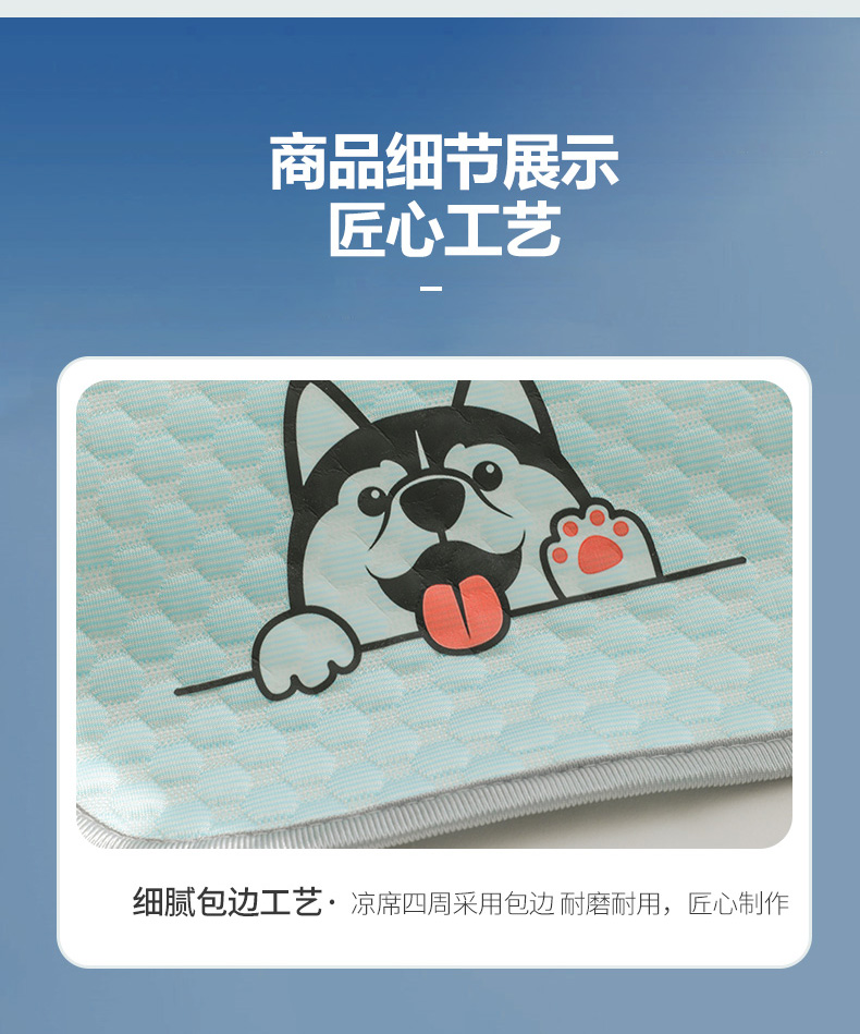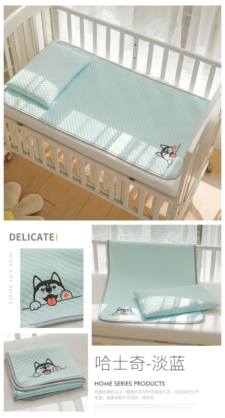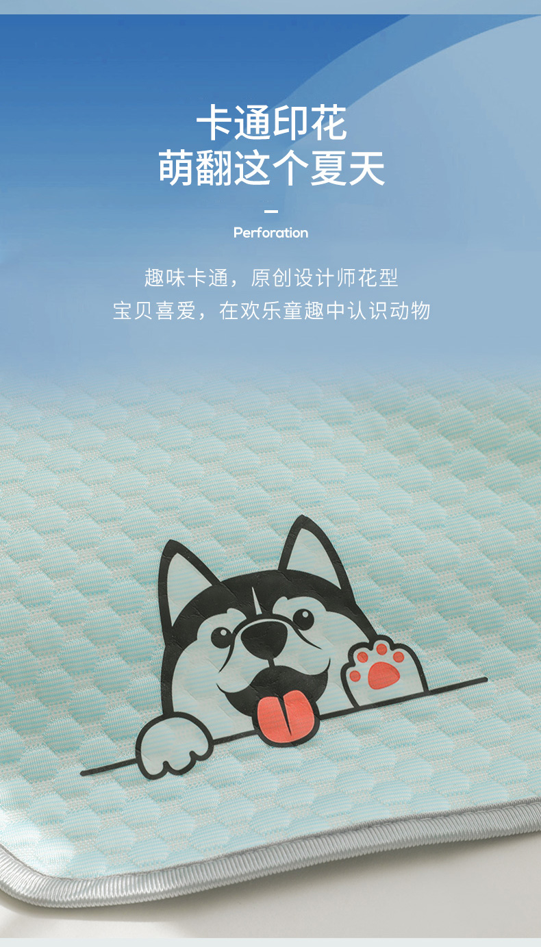• 91家纺网 家纺一手货源 找家纺 宅部落 2025新款凉感豆豆儿童卡通凉席 哈士奇-淡蓝